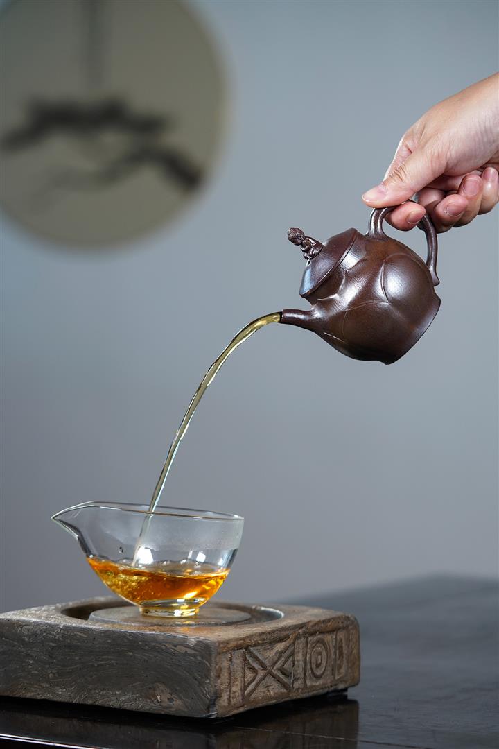 【泥料特點】砂土氣重,似淳實農民,日久使用,漸露鋒芒,養成變化,溫潤莊重。紫砂是壹種雙重氣孔結構的多孔性材質,氣孔微細,密度高。用紫砂壺沏茶,不失原味,且香不渙散,得茶之真香真味。紫砂使用越久,壺身色澤越發光亮照人,氣韻溫雅。紫砂壺長久使用器身會因撫摸擦拭,變得越發溫潤光澤。