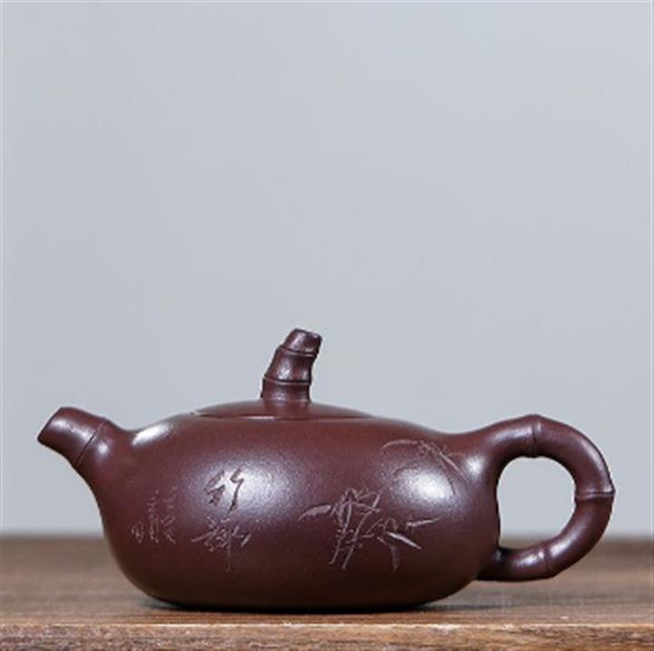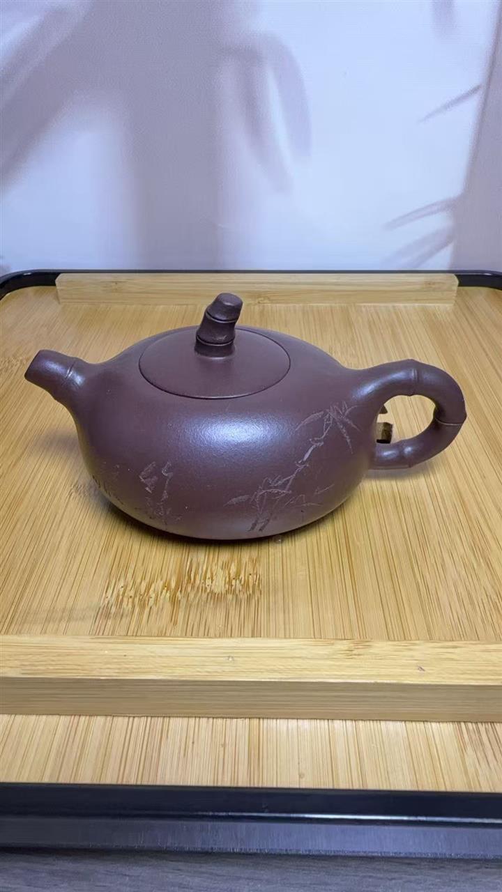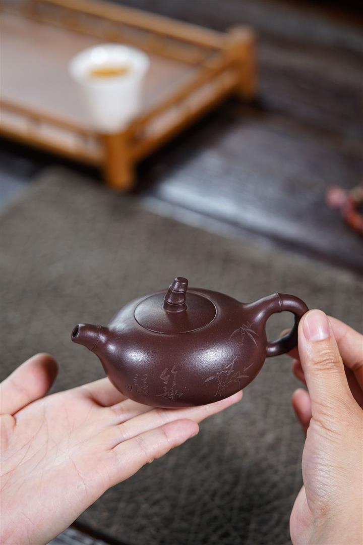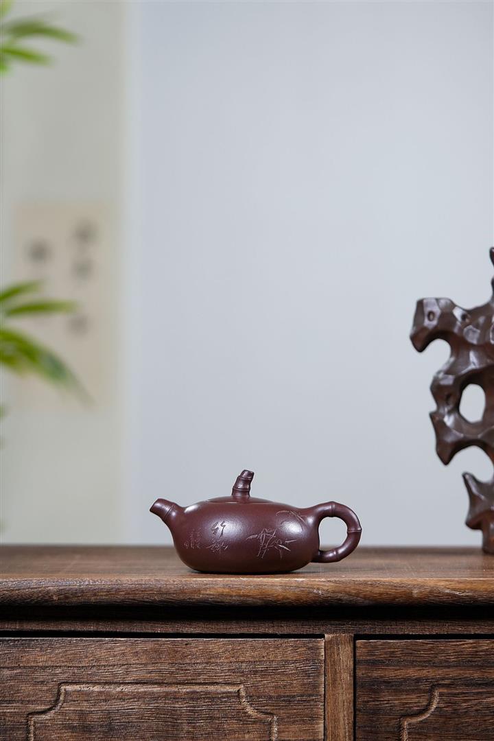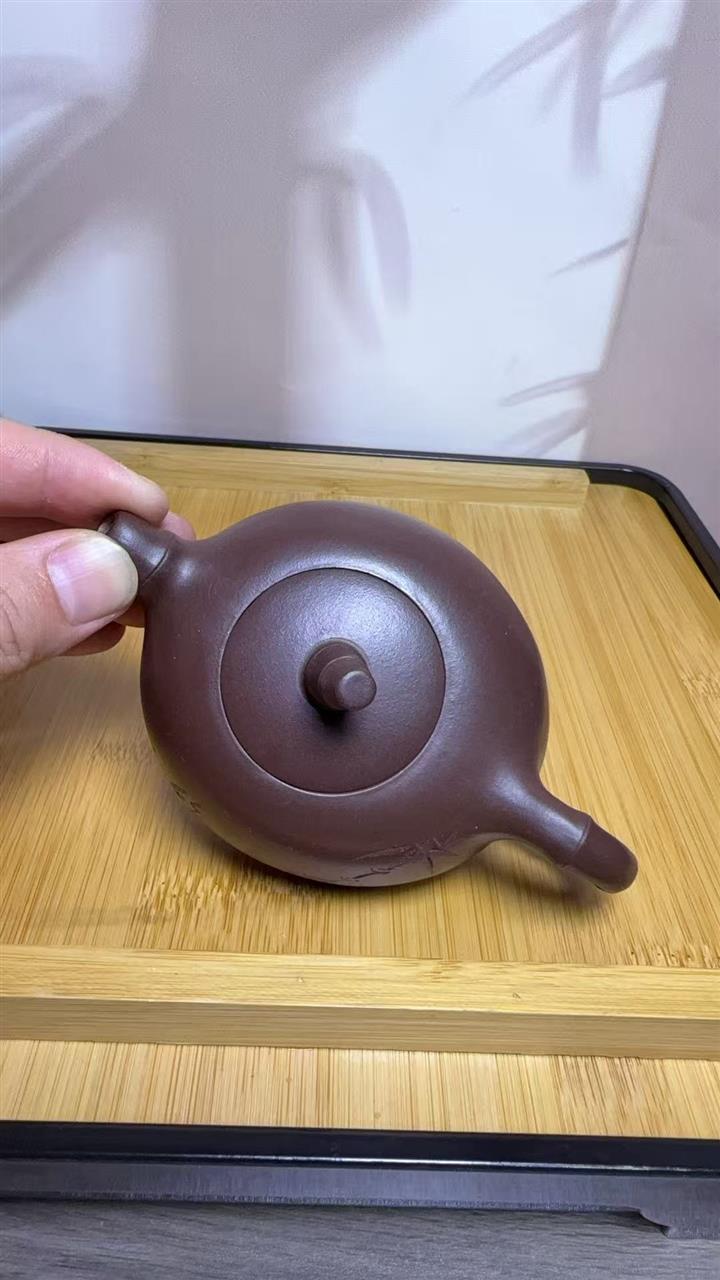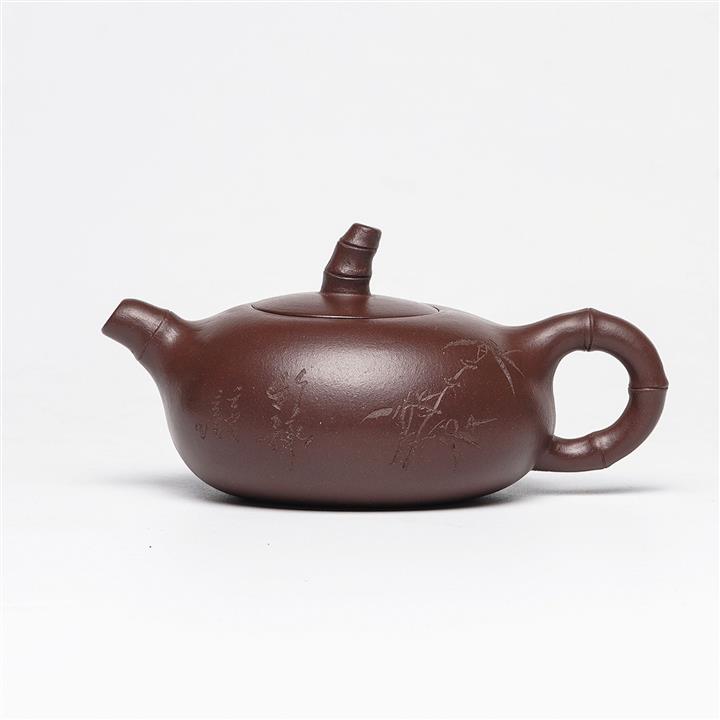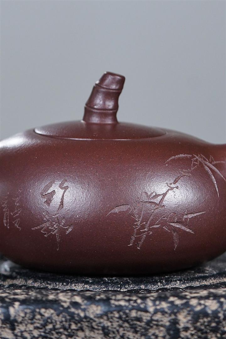 紫砂壺名家老紫泥刻繪周盤壺POT4196
