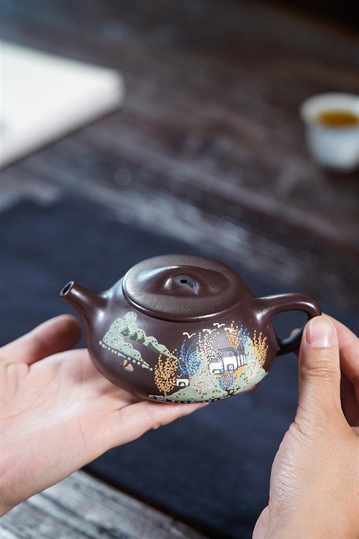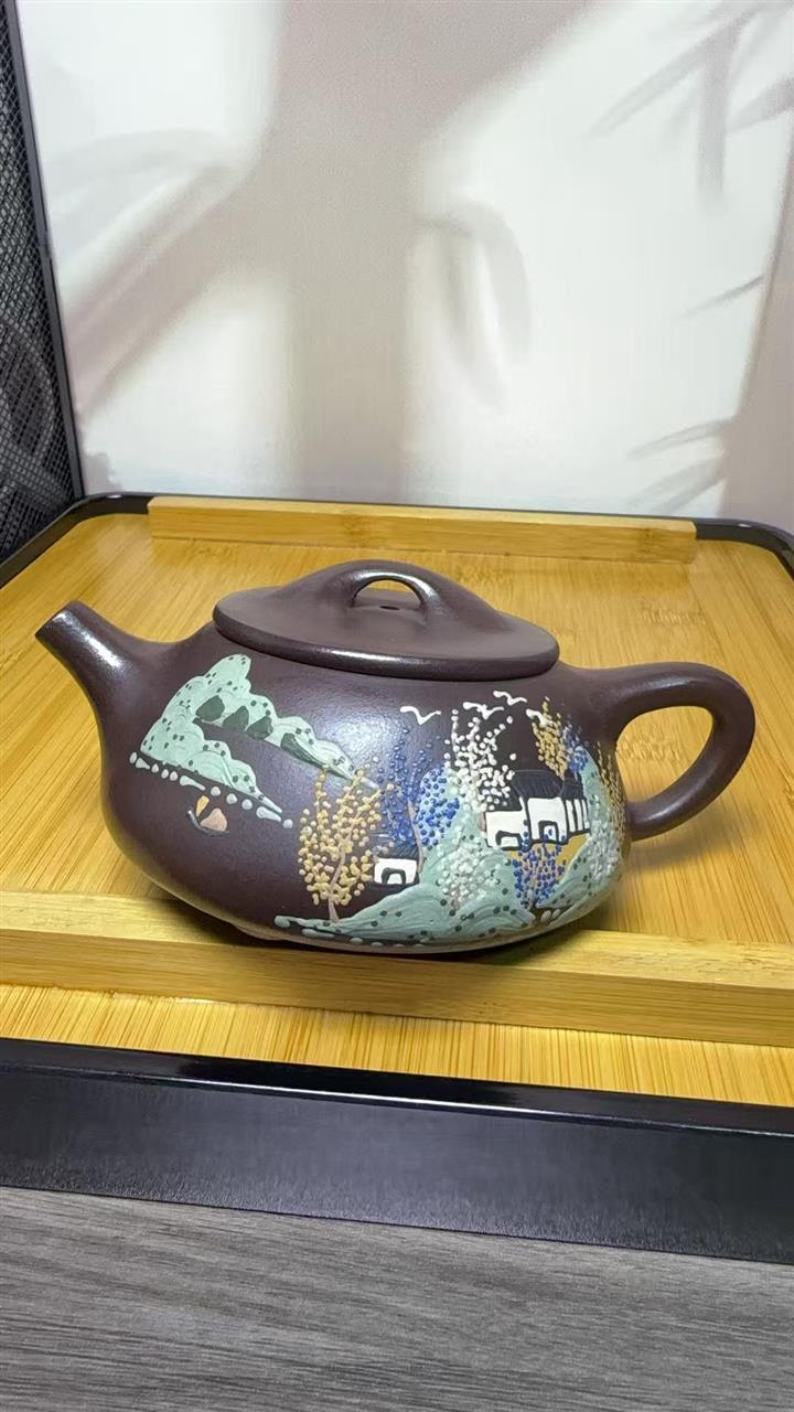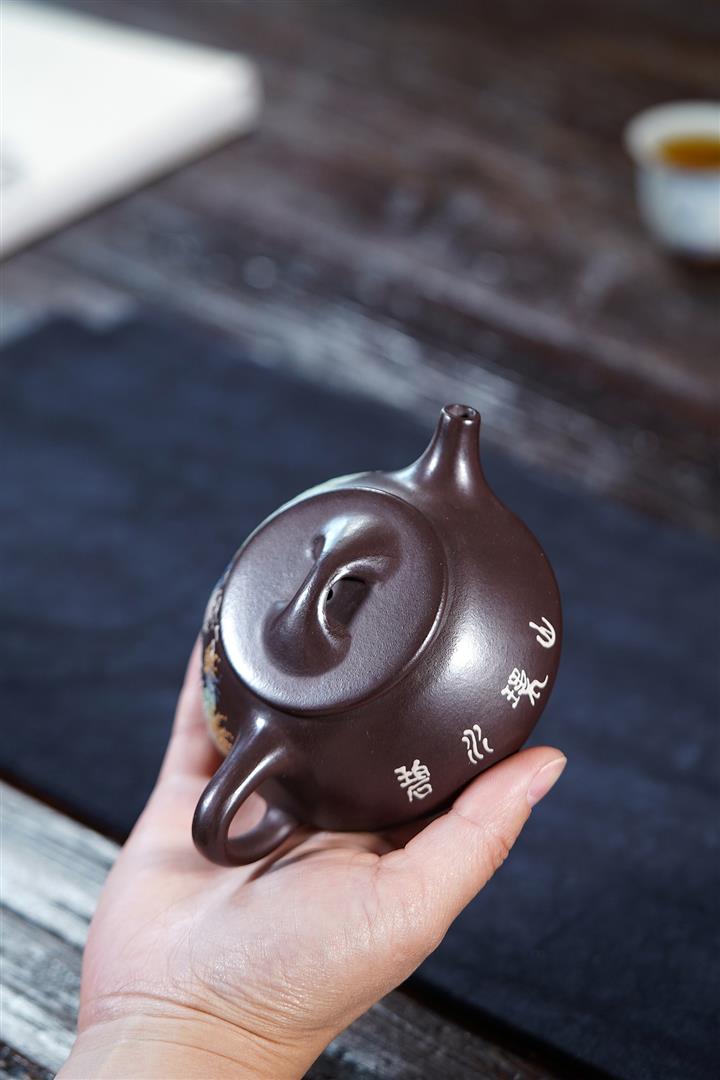 【作品介紹】此款壺形線條流暢,壺把,壺嘴,壺身壹氣呵成栩栩如生,是收藏把玩的好壺,泥料色澤古樸典雅,日久使用,漸露鋒芒,養成變化快,溫潤莊重,用其泡茶,使用的年代久,壺身就溫潤,泡出來的茶湯也就醇郁芳馨。