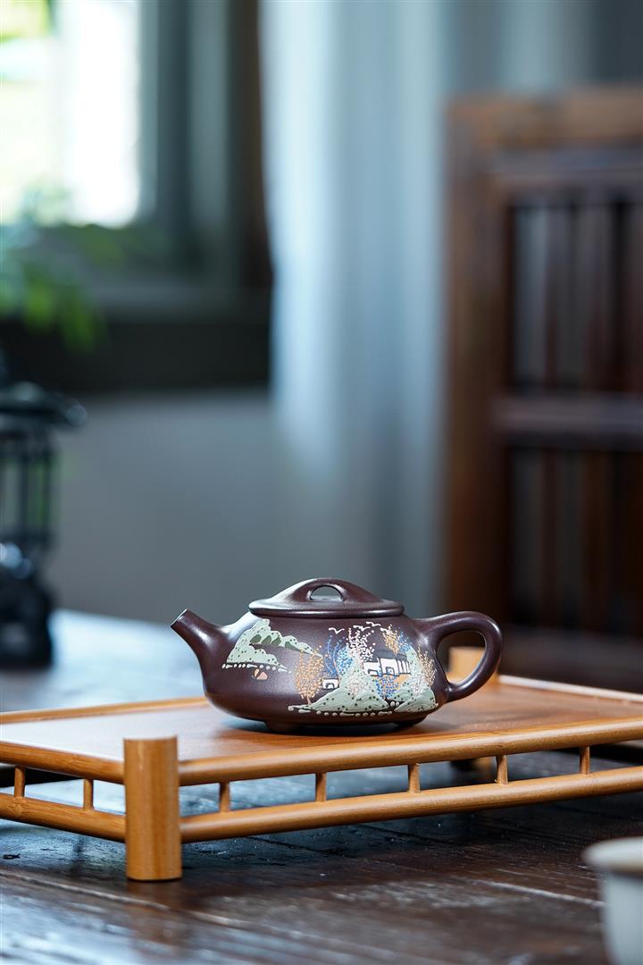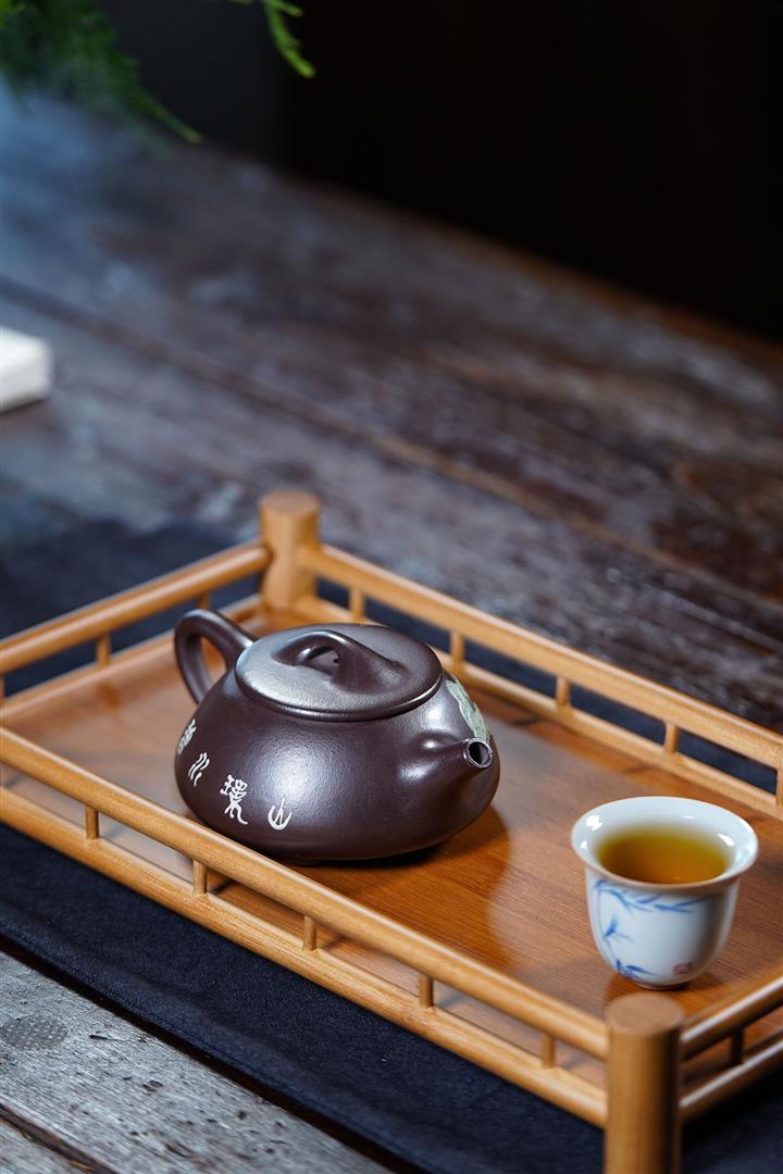 【泥料特點】砂土氣重,似淳實農民,日久使用,漸露鋒芒,養成變化,溫潤莊重。紫砂是壹種雙重氣孔結構的多孔性材質,氣孔微細,密度高。用紫砂壺沏茶,不失原味,且香不渙散,得茶之真香真味。紫砂使用越久,壺身色澤越發光亮照人,氣韻溫雅。紫砂壺長久使用器身會因撫摸擦拭,變得越發溫潤光澤。