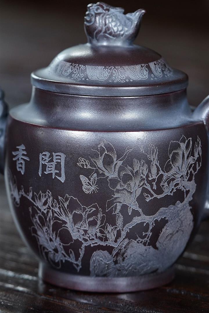 【泥料特點】砂土氣重,似淳實農民,日久使用,漸露鋒芒,養成變化,溫潤莊重。紫砂是壹種雙重氣孔結構的多孔性材質,氣孔微細,密度高。用紫砂壺沏茶,不失原味,且香不渙散,得茶之真香真味。紫砂使用越久,壺身色澤越發光亮照人,氣韻溫雅。紫砂壺長久使用器身會因撫摸擦拭,變得越發溫潤光澤。