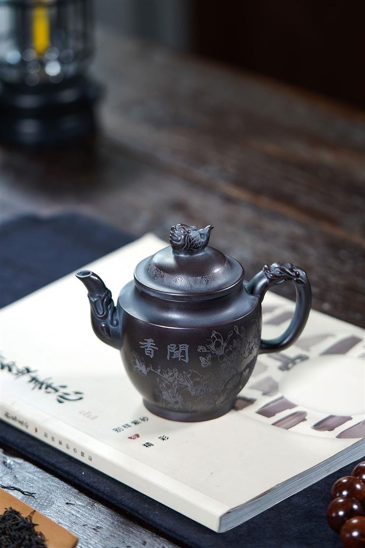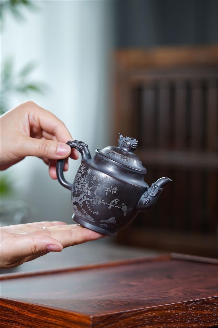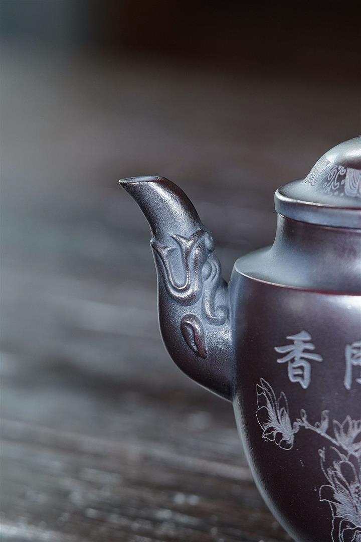 【作品介紹】此款壺形線條流暢,壺把,壺嘴,壺身壹氣呵成栩栩如生,是收藏把玩的好壺,泥料色澤古樸典雅,日久使用,漸露鋒芒,養成變化快,溫潤莊重,用其泡茶,使用的年代久,壺身就溫潤,泡出來的茶湯也就醇郁芳馨。