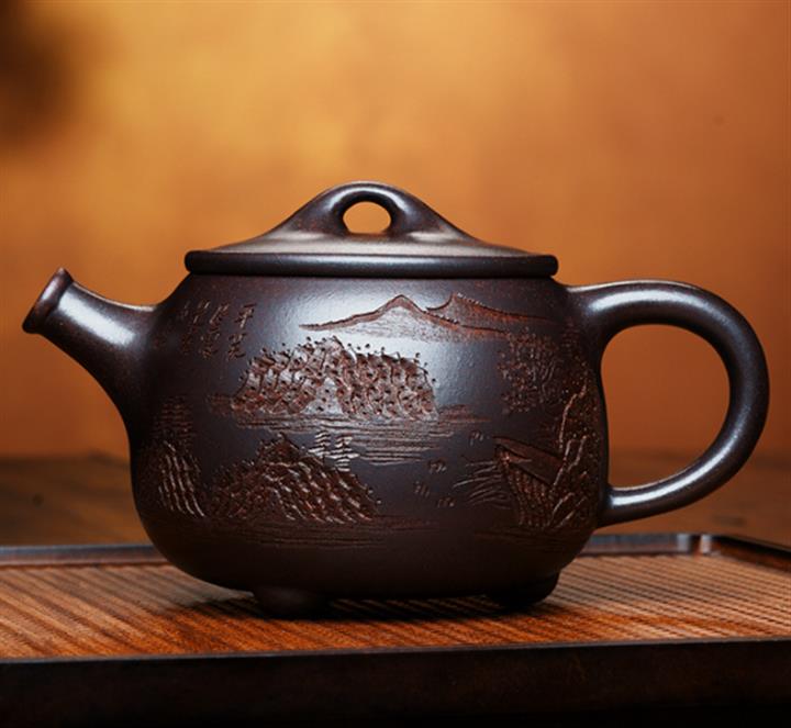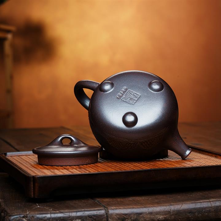【泥料特點】砂土氣重,似淳實農民,日久使用,漸露鋒芒,養成變化,溫潤莊重。紫砂是壹種雙重氣孔結構的多孔性材質,氣孔微細,密度高。用紫砂壺沏茶,不失原味,且香不渙散,得茶之真香真味。紫砂使用越久,壺身色澤越發光亮照人,氣韻溫雅。紫砂壺長久使用器身會因撫摸擦拭,變得越發溫潤光澤。