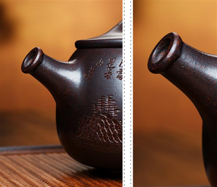【作品介紹】此款壺形線條流暢,壺把,壺嘴,壺身壹氣呵成栩栩如生,是收藏把玩的好壺,泥料色澤古樸典雅,日久使用,漸露鋒芒,養成變化快,溫潤莊重,用其泡茶,使用的年代久,壺身就溫潤,泡出來的茶湯也就醇郁芳馨。