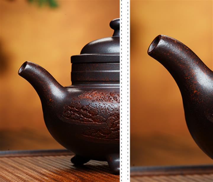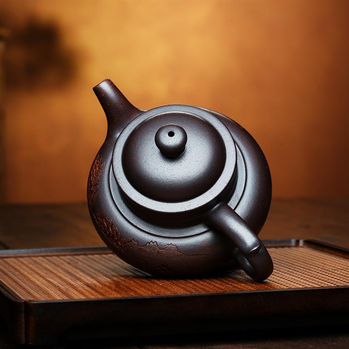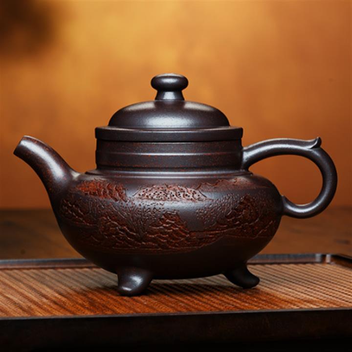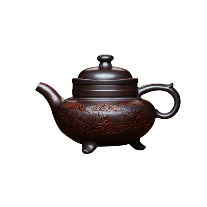 原礦大紅袍泥繪水平紫砂壺POT4996