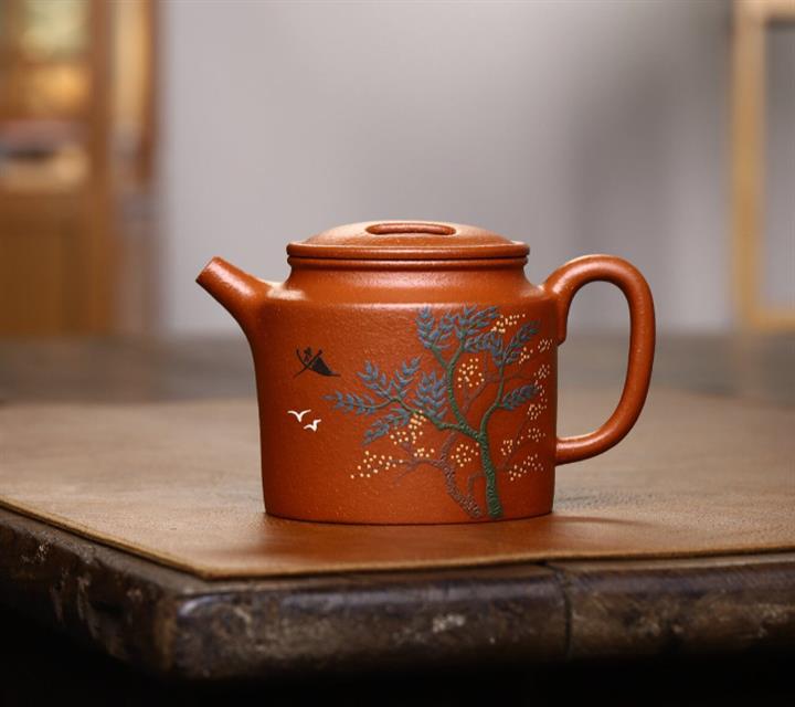 240cc原礦紅皮龍泥繪高德鐘茶壺POT8957