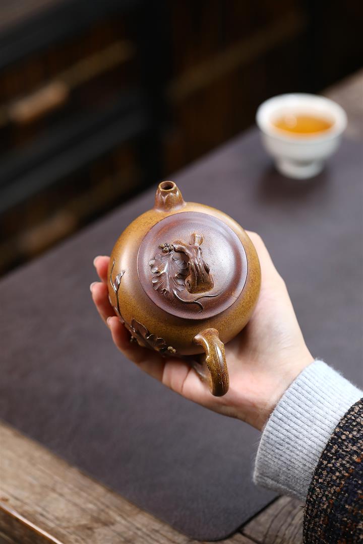 260cc原礦龍骨金砂泥繪葡萄容天茶壺POT8973