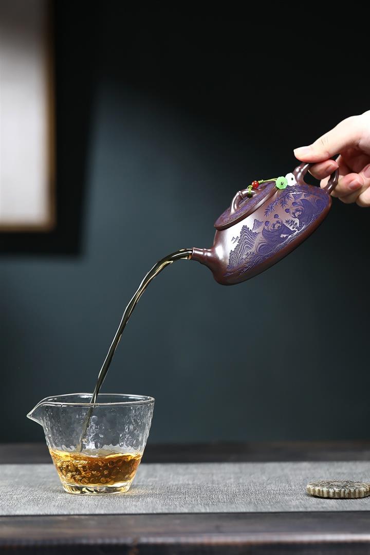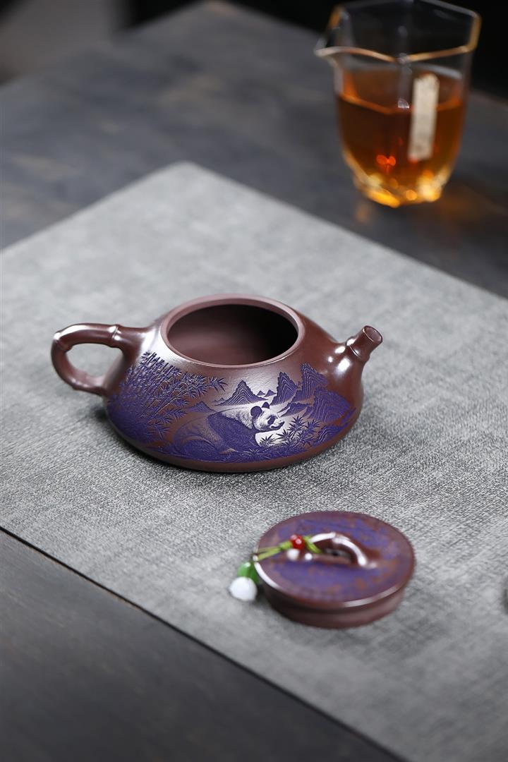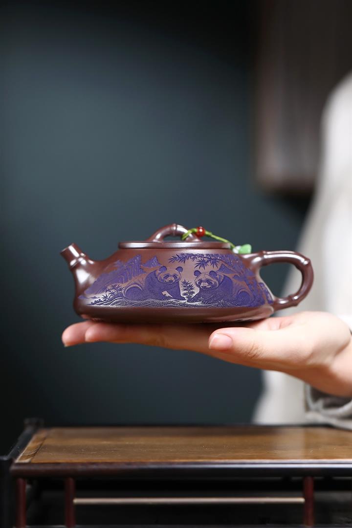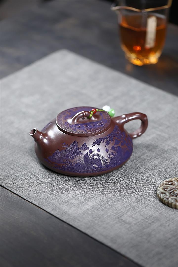 【泥料特點】砂土氣重,似淳實農民,日久使用,漸露鋒芒,養成變化,溫潤莊重。紫砂是壹種雙重氣孔結構的多孔性材質,氣孔微細,密度高。用紫砂壺沏茶,不失原味,且香不渙散,得茶之真香真味。紫砂使用越久,壺身色澤越發光亮照人,氣韻溫雅。紫砂壺長久使用器身會因撫摸擦拭,變得越發溫潤光澤。