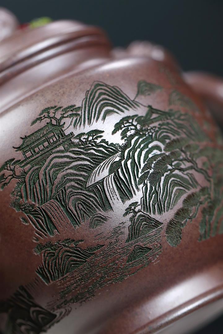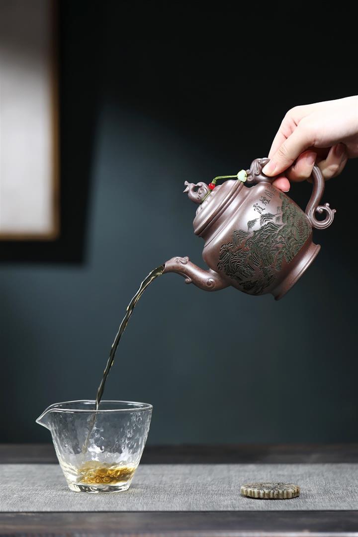 【泥料特點】砂土氣重,似淳實農民,日久使用,漸露鋒芒,養成變化,溫潤莊重。紫砂是壹種雙重氣孔結構的多孔性材質,氣孔微細,密度高。用紫砂壺沏茶,不失原味,且香不渙散,得茶之真香真味。紫砂使用越久,壺身色澤越發光亮照人,氣韻溫雅。紫砂壺長久使用器身會因撫摸擦拭,變得越發溫潤光澤。