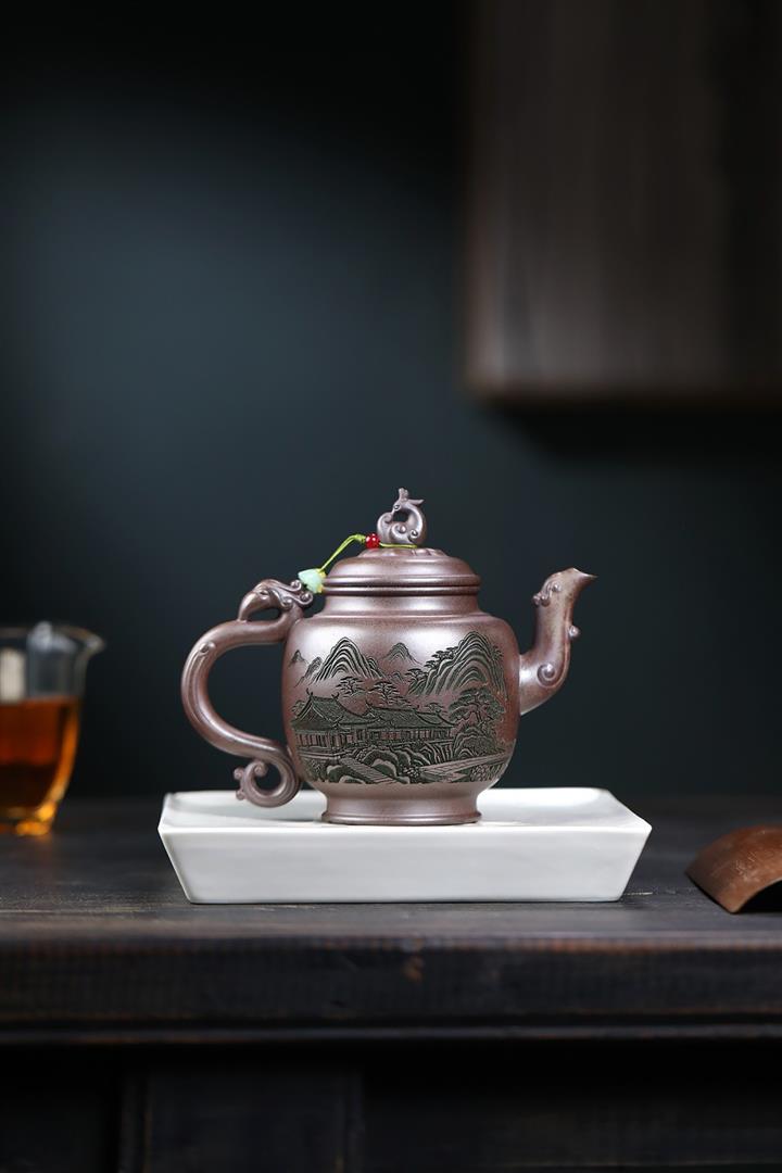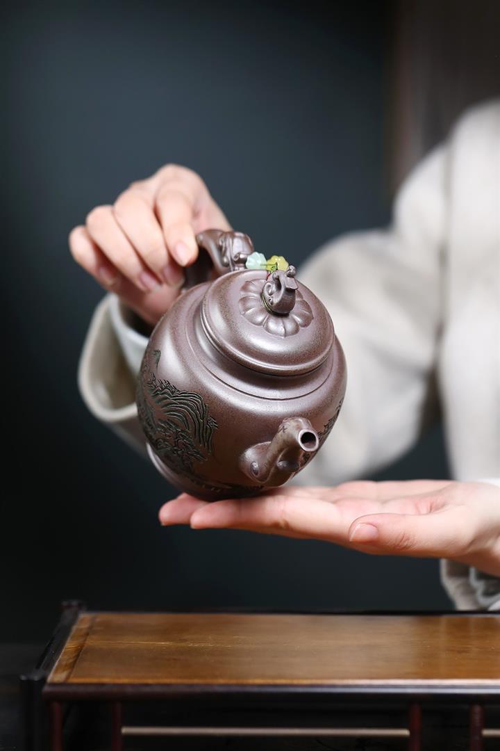 【作品介紹】此款壺形線條流暢,壺把,壺嘴,壺身壹氣呵成栩栩如生,是收藏把玩的好壺,泥料色澤古樸典雅,日久使用,漸露鋒芒,養成變化快,溫潤莊重,用其泡茶,使用的年代久,壺身就溫潤,泡出來的茶湯也就醇郁芳馨。