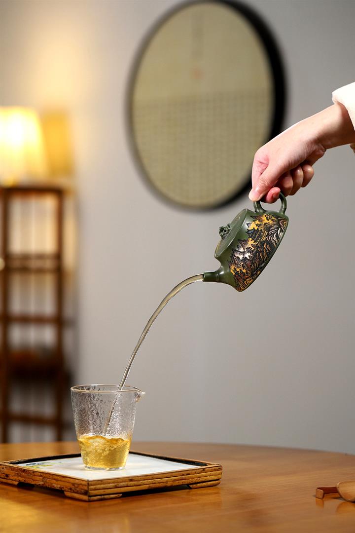 200cc原礦綠泥滿刻彩繪溪山映景茶壺POT9018