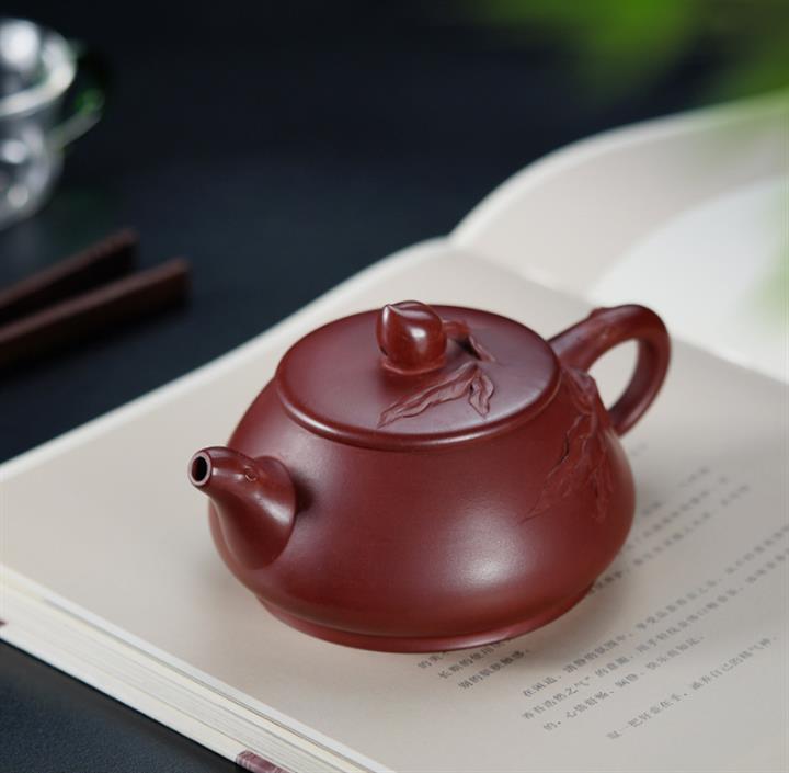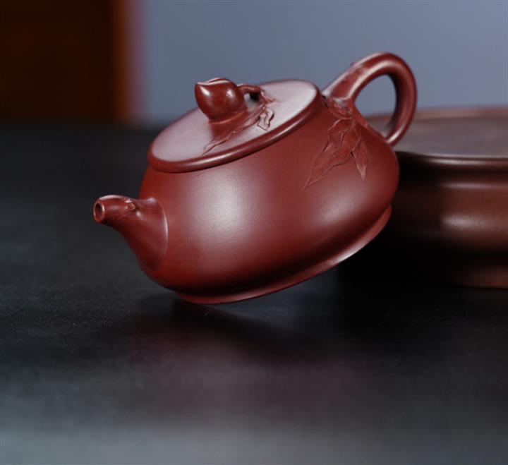 原礦龍血砂手工刻繪龍珠紫砂壺