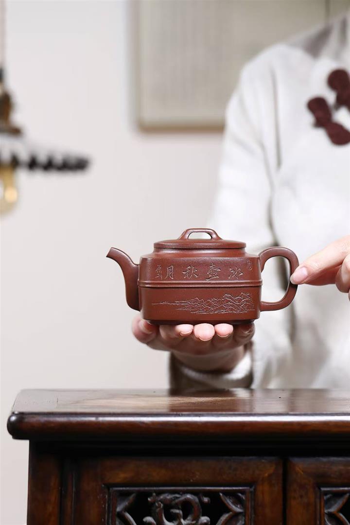 【作品介紹】此款壺形線條流暢,壺把,壺嘴,壺身壹氣呵成栩栩如生,是收藏把玩的好壺,泥料色澤古樸典雅,日久使用,漸露鋒芒,養成變化快,溫潤莊重,用其泡茶,使用的年代久,壺身就溫潤,泡出來的茶湯也就醇郁芳馨。