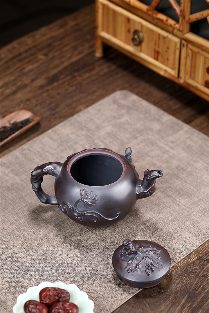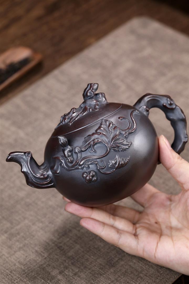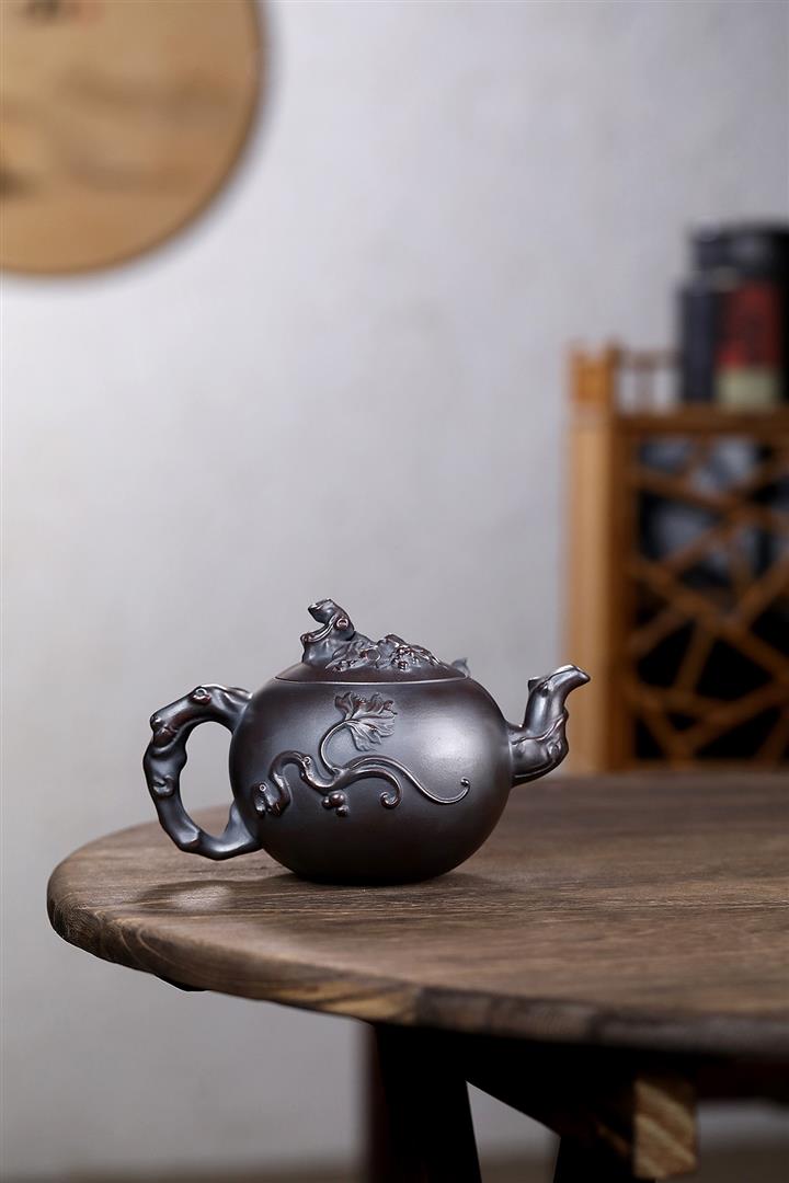 410cc原礦古銅泥松鼠葡萄茶壺POT9028