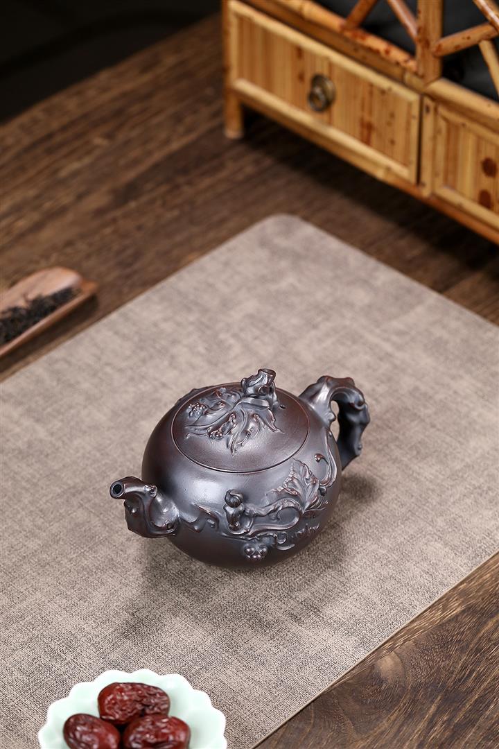 紫砂壺手工原礦紫泥吉祥如意龍尊壺家用泡茶禮品茶具pot3807