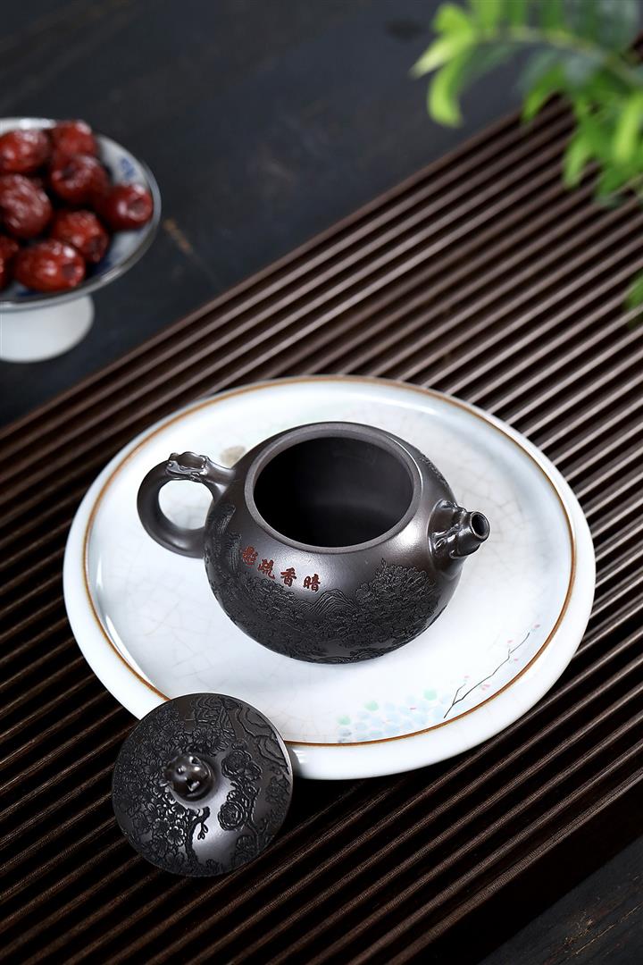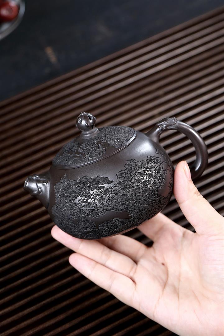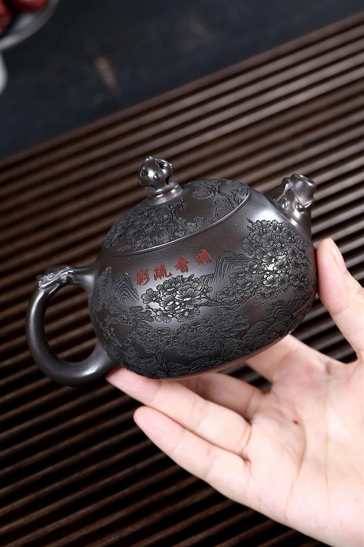 【作品介紹】此款壺形線條流暢,壺把,壺嘴,壺身壹氣呵成栩栩如生,是收藏把玩的好壺,泥料色澤古樸典雅,日久使用,漸露鋒芒,養成變化快,溫潤莊重,用其泡茶,使用的年代久,壺身就溫潤,泡出來的茶湯也就醇郁芳馨。