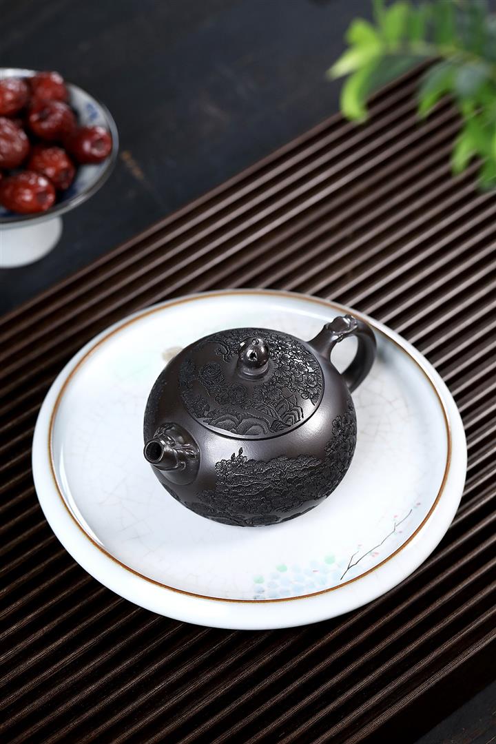 260cc原礦石黃泥刻繪鏤空西施茶壺POT9029