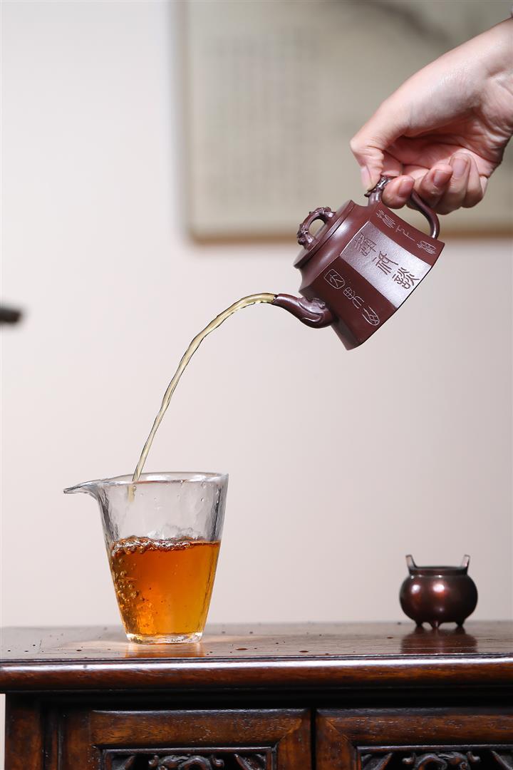 【泥料特點】砂土氣重,似淳實農民,日久使用,漸露鋒芒,養成變化,溫潤莊重。紫砂是壹種雙重氣孔結構的多孔性材質,氣孔微細,密度高。用紫砂壺沏茶,不失原味,且香不渙散,得茶之真香真味。紫砂使用越久,壺身色澤越發光亮照人,氣韻溫雅。紫砂壺長久使用器身會因撫摸擦拭,變得越發溫潤光澤。