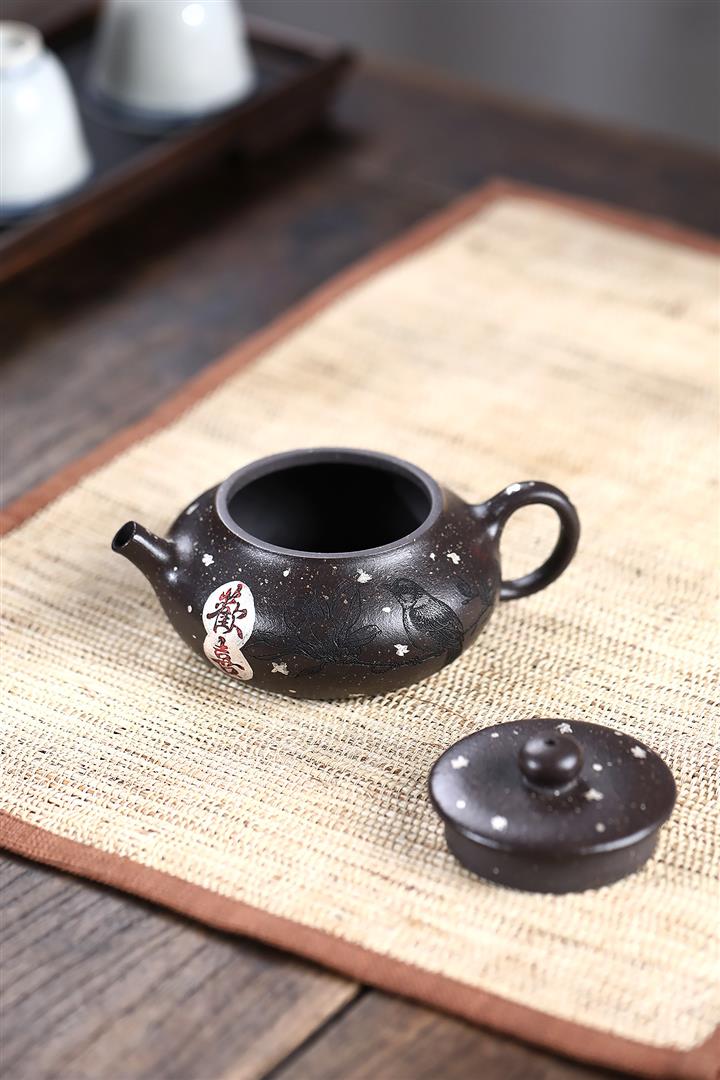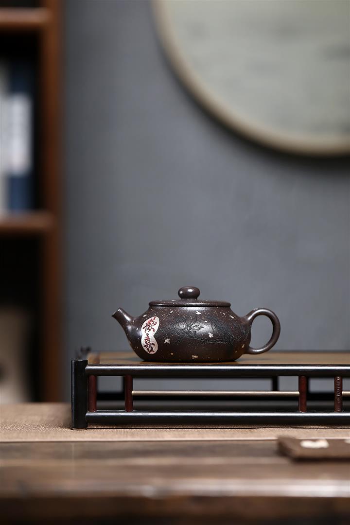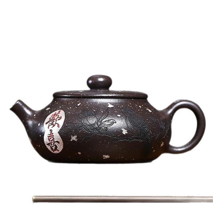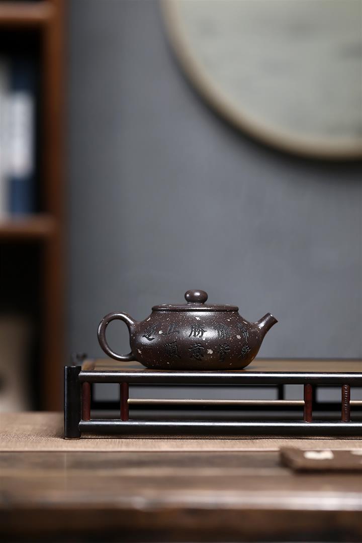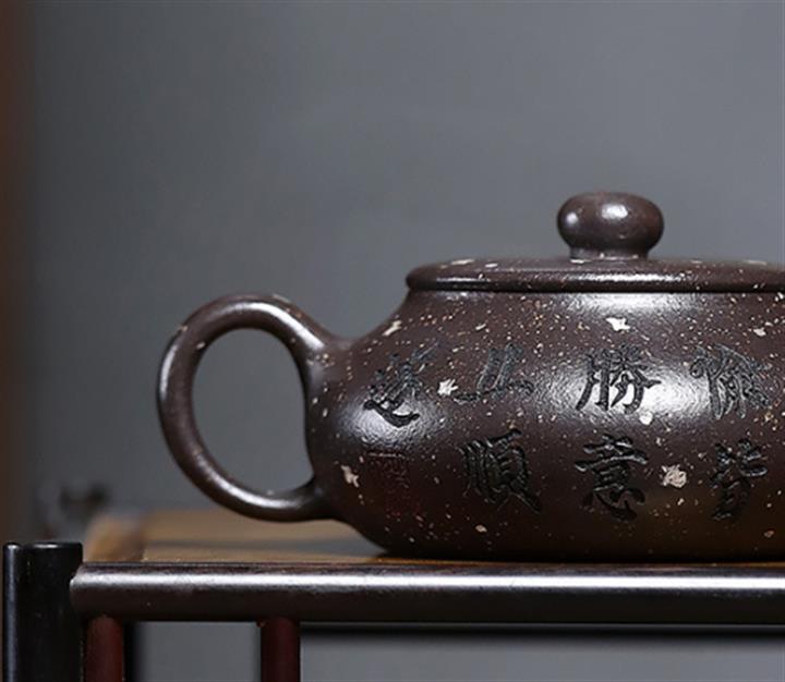 原礦紫砂壺紫泥手工刻繪百福柱礎POT4239