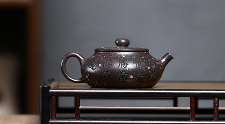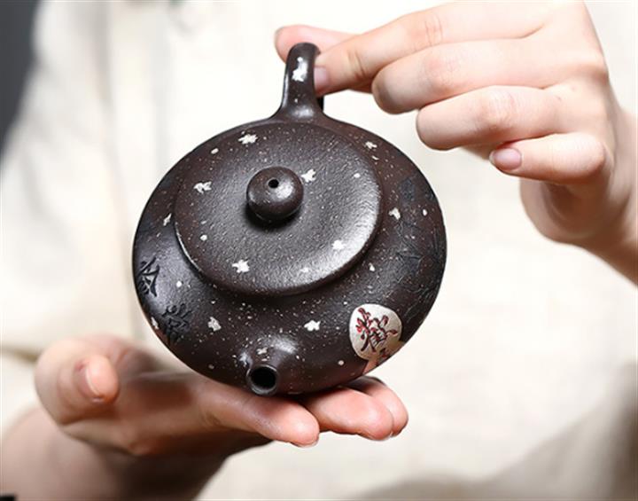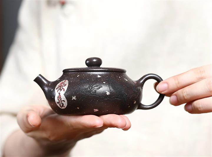【泥料特點】砂土氣重,似淳實農民,日久使用,漸露鋒芒,養成變化,溫潤莊重。紫砂是壹種雙重氣孔結構的多孔性材質,氣孔微細,密度高。用紫砂壺沏茶,不失原味,且香不渙散,得茶之真香真味。紫砂使用越久,壺身色澤越發光亮照人,氣韻溫雅。紫砂壺長久使用器身會因撫摸擦拭,變得越發溫潤光澤。