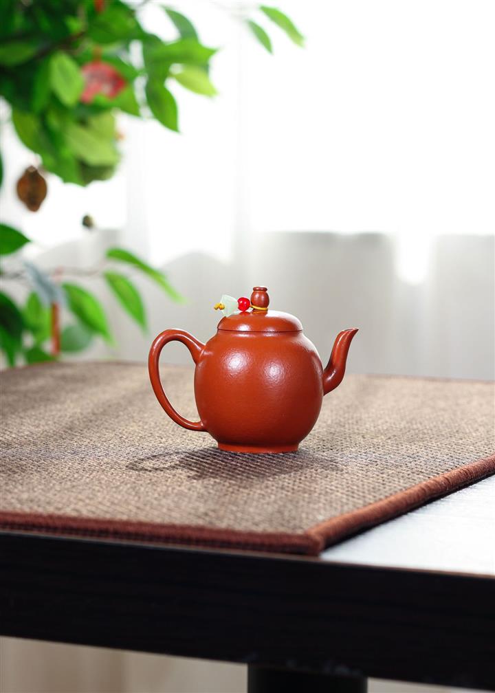 棗紅泥觀山漢瓦紫砂壺POT5884