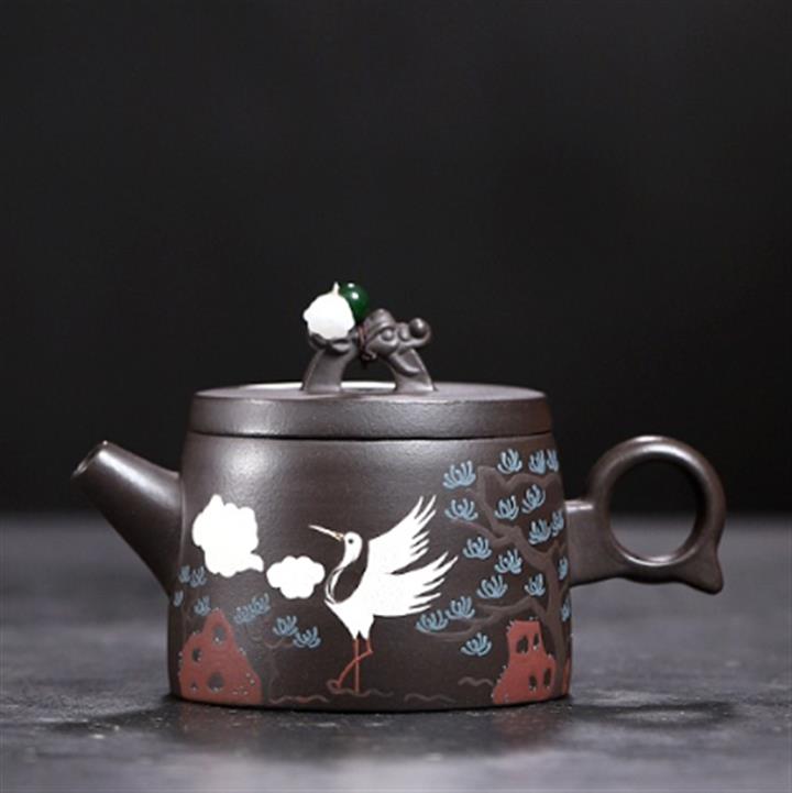 230cc原礦黑金砂松鶴延年漢瓦茶壺POT8170