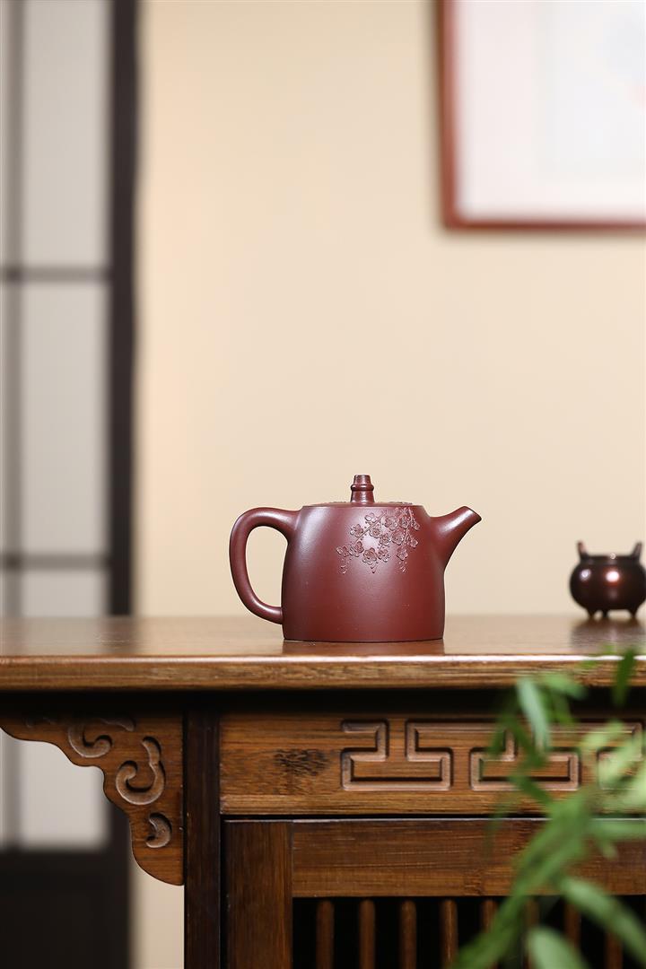 【泥料特點】砂土氣重,似淳實農民,日久使用,漸露鋒芒,養成變化,溫潤莊重。紫砂是壹種雙重氣孔結構的多孔性材質,氣孔微細,密度高。用紫砂壺沏茶,不失原味,且香不渙散,得茶之真香真味。紫砂使用越久,壺身色澤越發光亮照人,氣韻溫雅。紫砂壺長久使用器身會因撫摸擦拭,變得越發溫潤光澤。