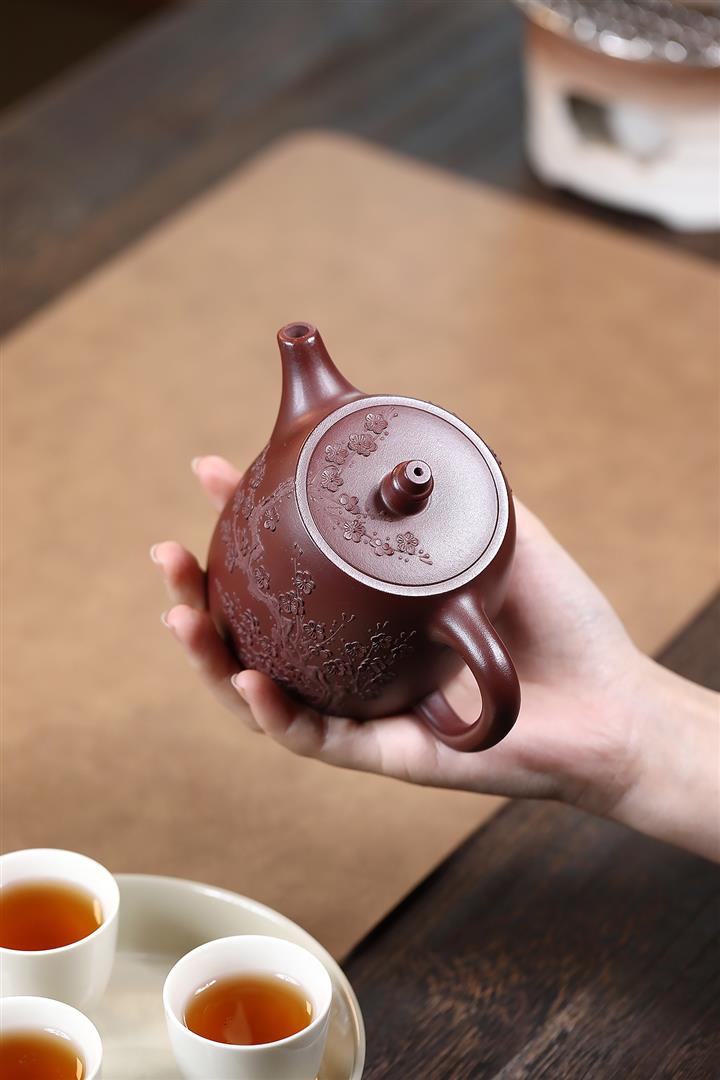 120cc雞血大紅袍彩刻小龍蛋茶壺POT8177