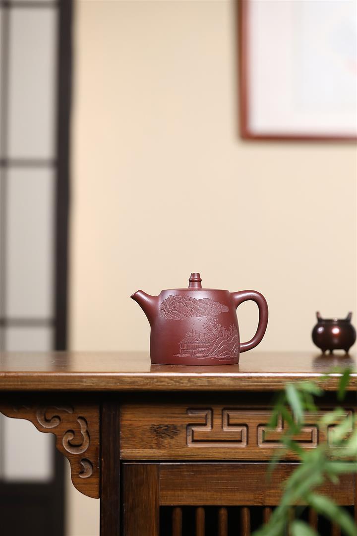 原礦大紅袍純手工彩繪秦權茶壺POT7749