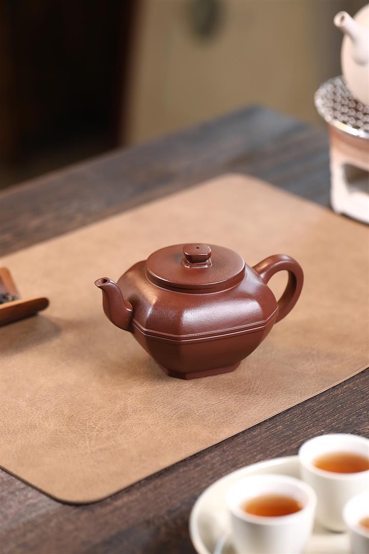 【泥料特點】砂土氣重,似淳實農民,日久使用,漸露鋒芒,養成變化,溫潤莊重。紫砂是壹種雙重氣孔結構的多孔性材質,氣孔微細,密度高。用紫砂壺沏茶,不失原味,且香不渙散,得茶之真香真味。紫砂使用越久,壺身色澤越發光亮照人,氣韻溫雅。紫砂壺長久使用器身會因撫摸擦拭,變得越發溫潤光澤。