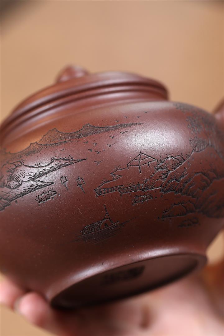 龍血砂匠心手製刻繪漢瓦紫砂壺POT6472