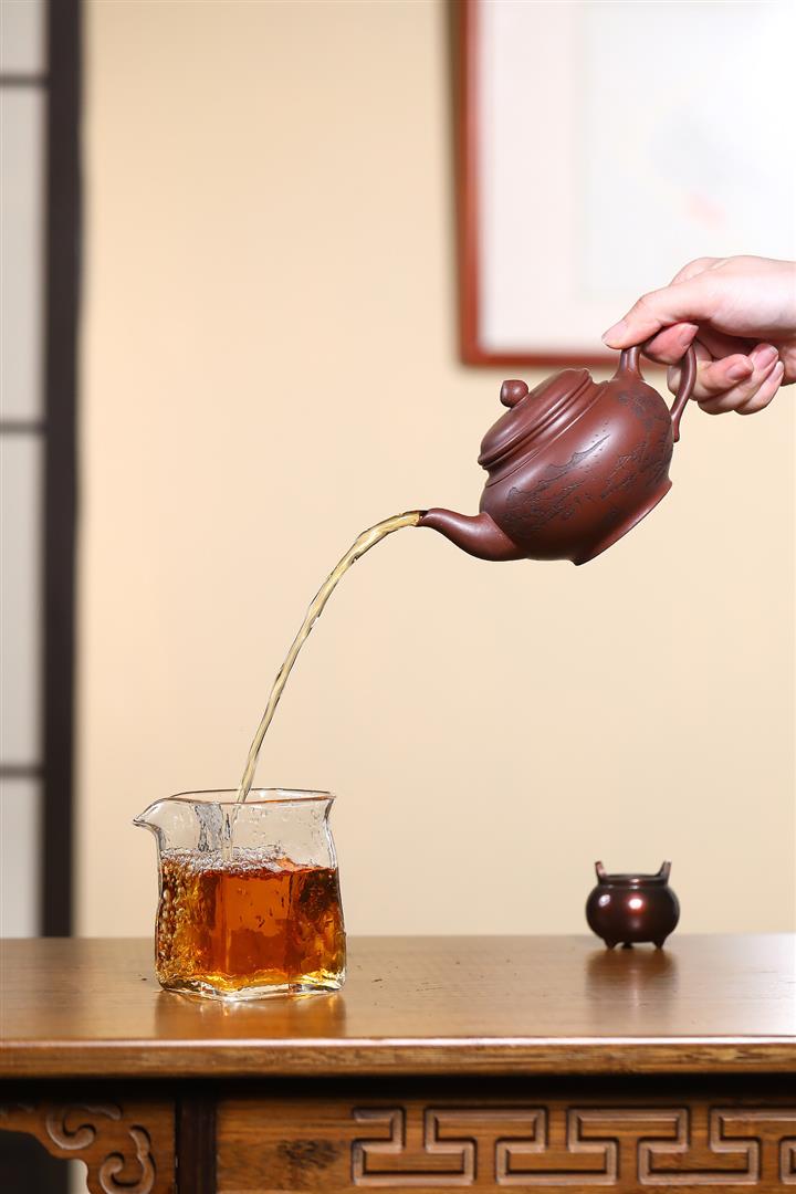 【泥料特點】砂土氣重,似淳實農民,日久使用,漸露鋒芒,養成變化,溫潤莊重。紫砂是壹種雙重氣孔結構的多孔性材質,氣孔微細,密度高。用紫砂壺沏茶,不失原味,且香不渙散,得茶之真香真味。紫砂使用越久,壺身色澤越發光亮照人,氣韻溫雅。紫砂壺長久使用器身會因撫摸擦拭,變得越發溫潤光澤。
