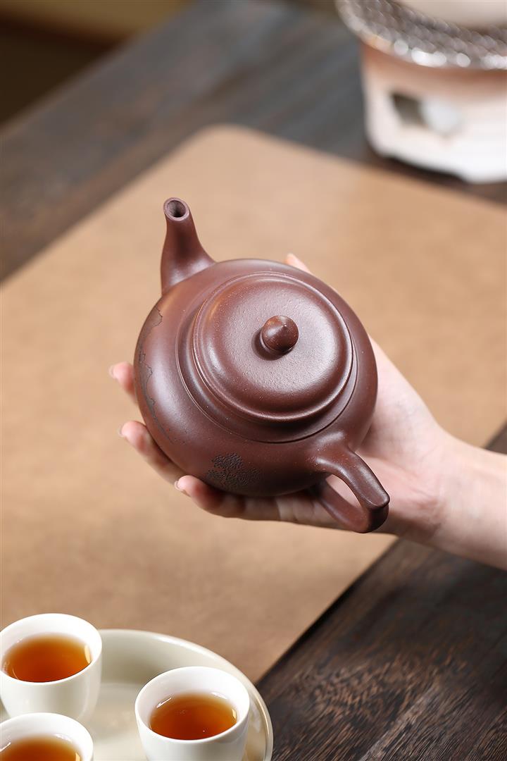 【作品介紹】此款壺形線條流暢,壺把,壺嘴,壺身壹氣呵成栩栩如生,是收藏把玩的好壺,泥料色澤古樸典雅,日久使用,漸露鋒芒,養成變化快,溫潤莊重,用其泡茶,使用的年代久,壺身就溫潤,泡出來的茶湯也就醇郁芳馨。