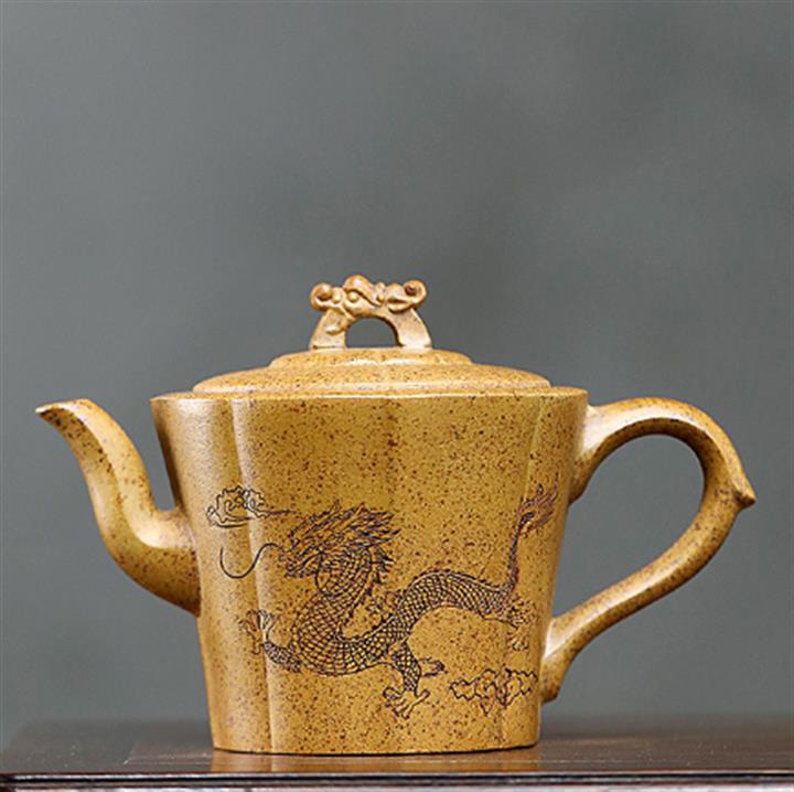 【作品介紹】此款壺形線條流暢,壺把,壺嘴,壺身壹氣呵成栩栩如生,是收藏把玩的好壺,泥料色澤古樸典雅,日久使用,漸露鋒芒,養成變化快,溫潤莊重,用其泡茶,使用的年代久,壺身就溫潤,泡出來的茶湯也就醇郁芳馨。