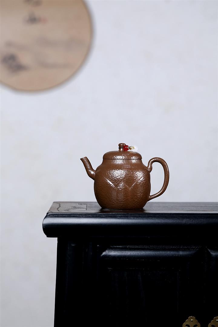 250cc原礦赤金朱泥石紋蓮花泡茶壺POT9127