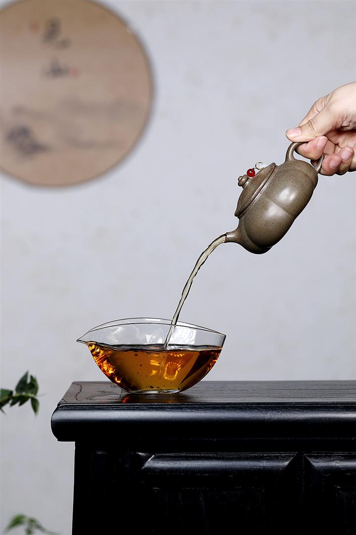 【泥料特點】砂土氣重,似淳實農民,日久使用,漸露鋒芒,養成變化,溫潤莊重。紫砂是壹種雙重氣孔結構的多孔性材質,氣孔微細,密度高。用紫砂壺沏茶,不失原味,且香不渙散,得茶之真香真味。紫砂使用越久,壺身色澤越發光亮照人,氣韻溫雅。紫砂壺長久使用器身會因撫摸擦拭,變得越發溫潤光澤。