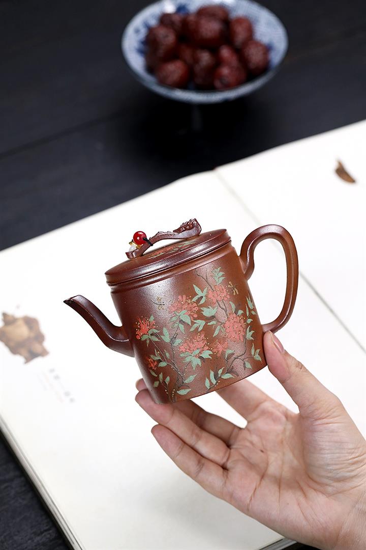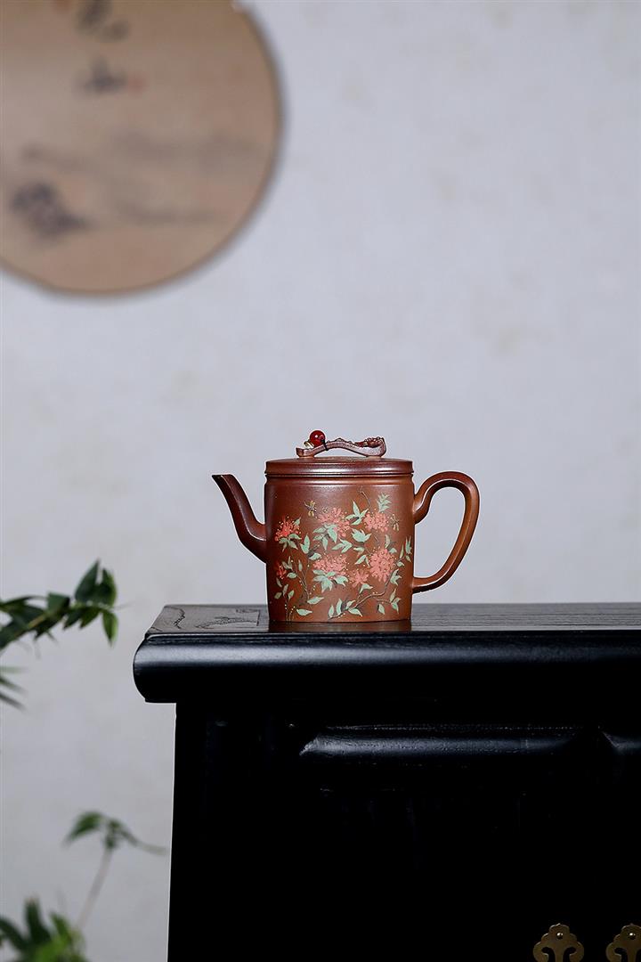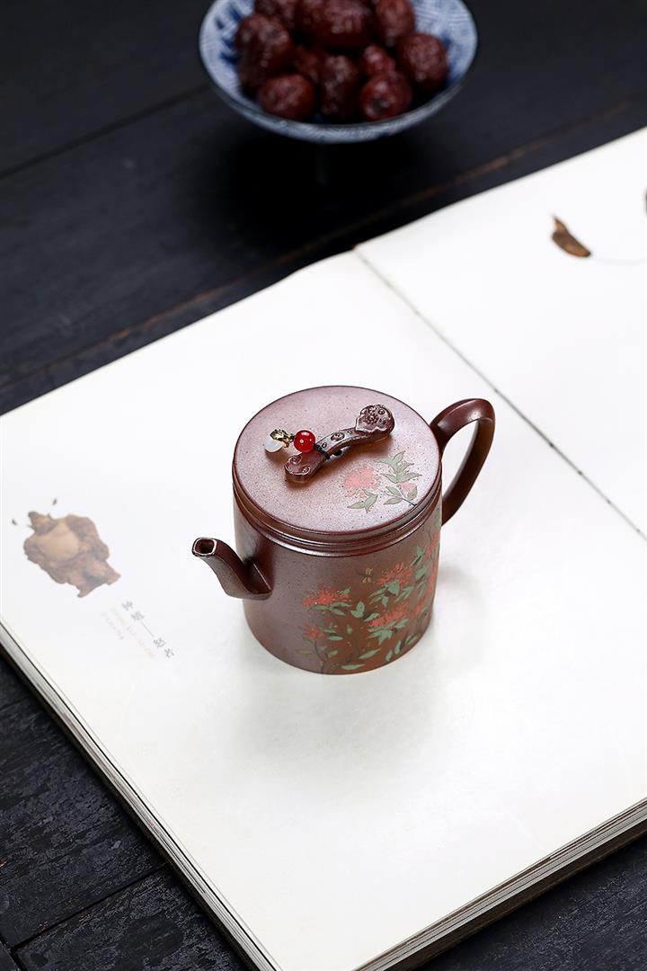 白段手繪刻繪秋水壺功夫泡茶壺紫砂壺 pot3388