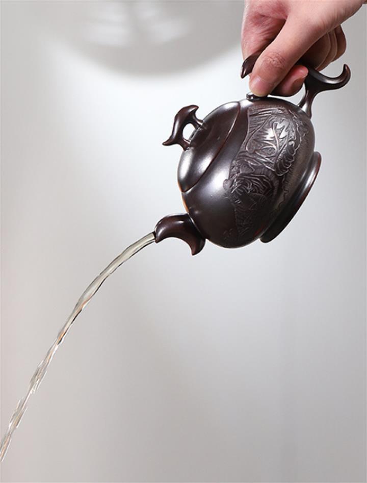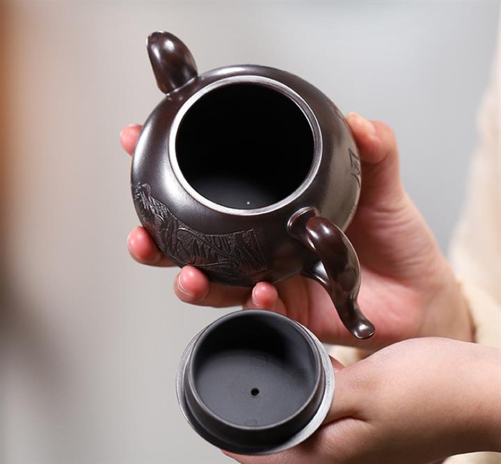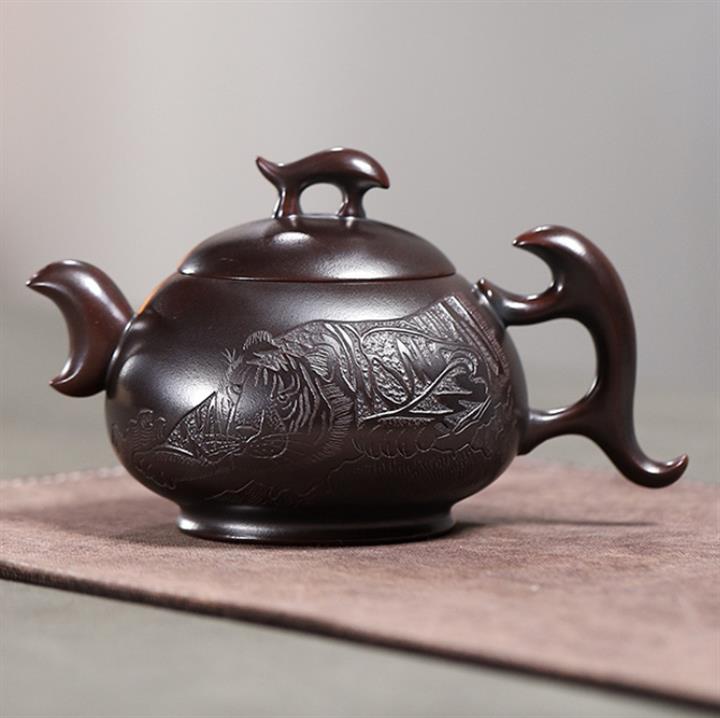 原礦大紅袍牡丹大口漢瓦茶壺POT7832