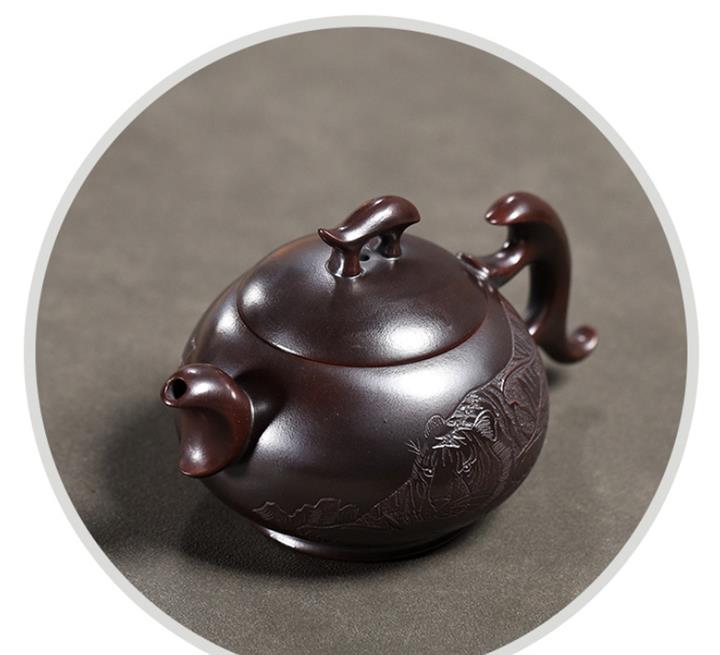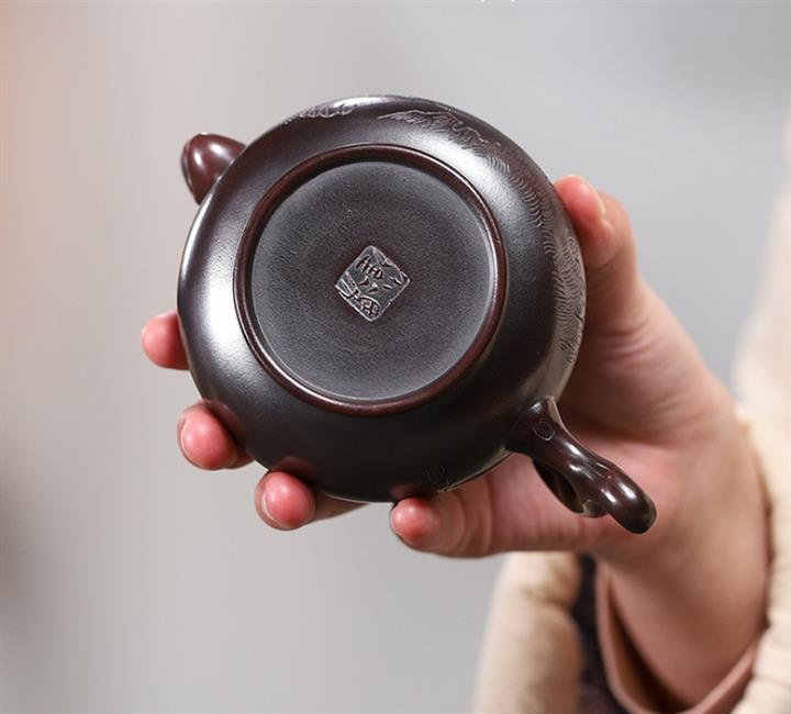 原礦紫泥八方山水石瓢茶壺POT7834