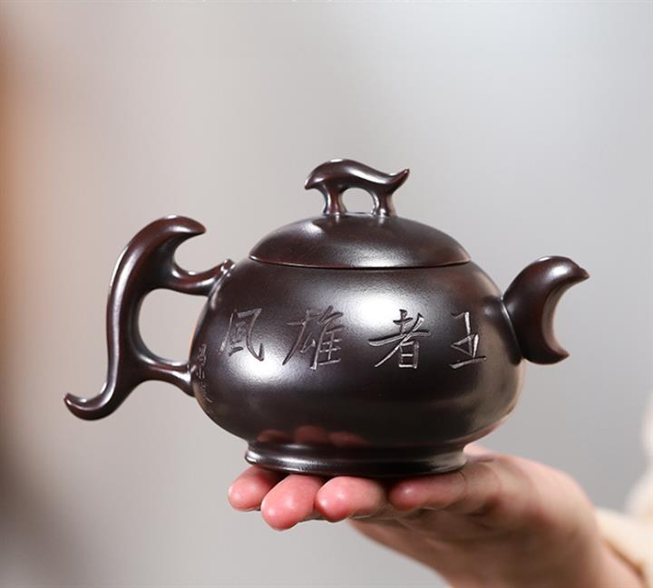 【作品介紹】此款壺形線條流暢,壺把,壺嘴,壺身壹氣呵成栩栩如生,是收藏把玩的好壺,泥料色澤古樸典雅,日久使用,漸露鋒芒,養成變化快,溫潤莊重,用其泡茶,使用的年代久,壺身就溫潤,泡出來的茶湯也就醇郁芳馨。