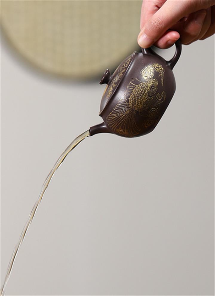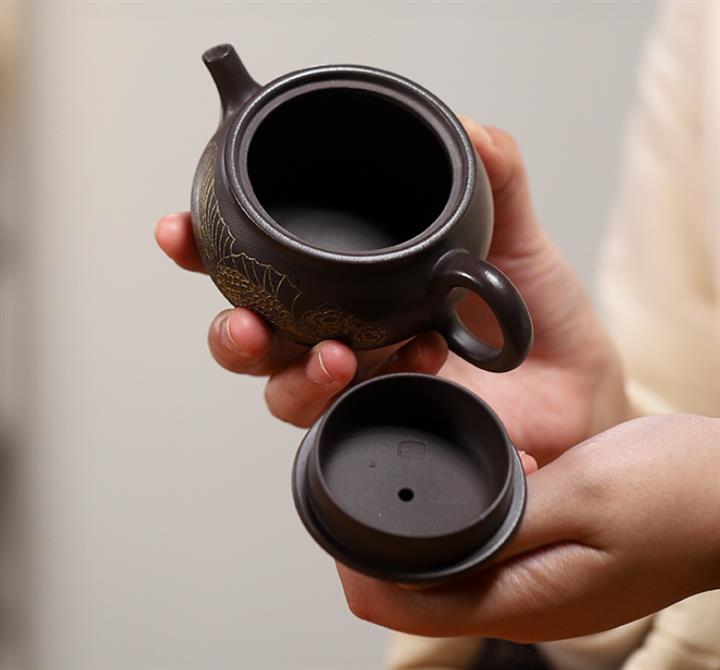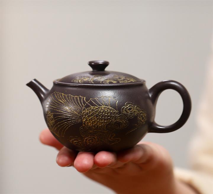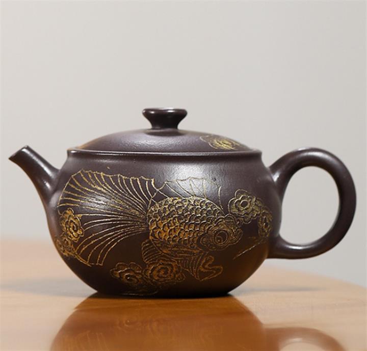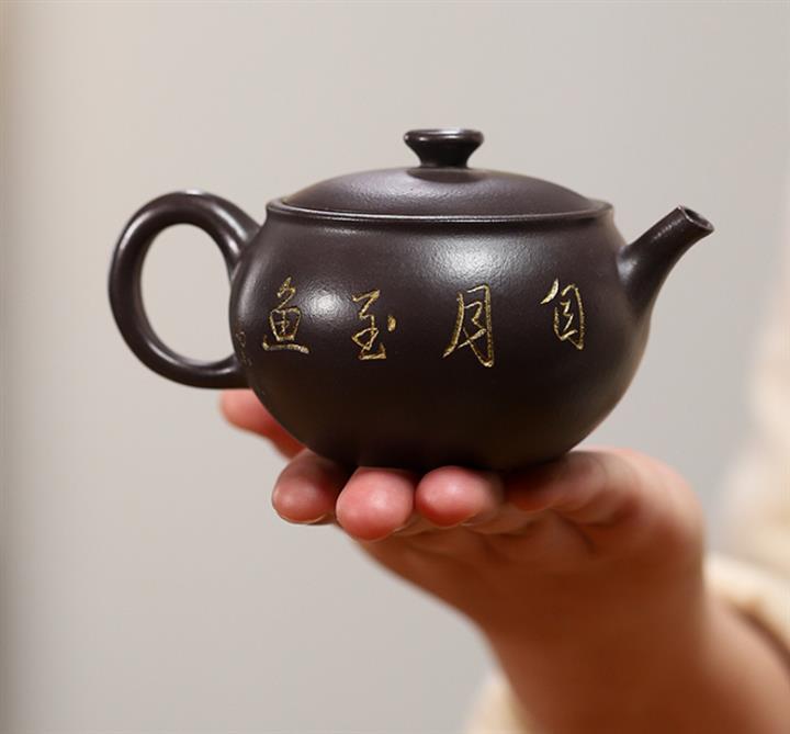 大口暢遊江湖原礦紫泥手刻紫砂壺pot3884