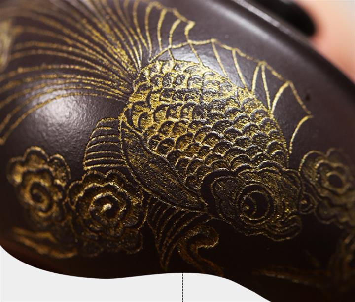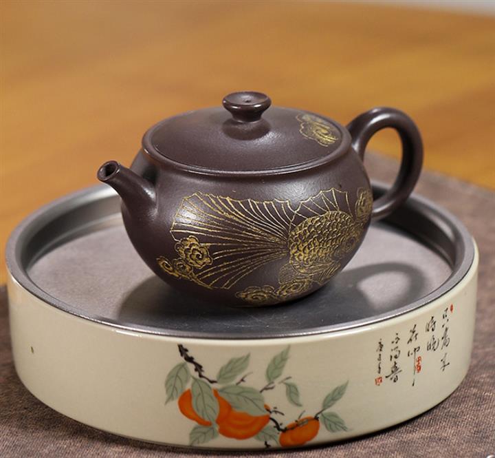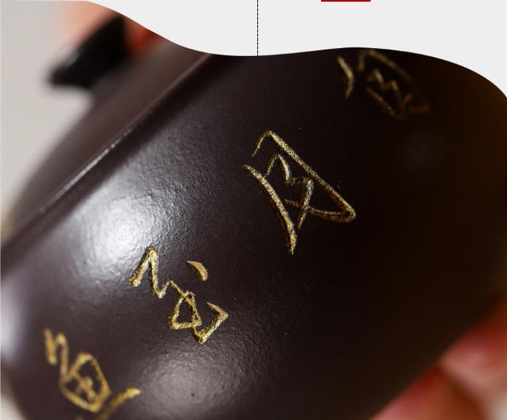 大口明爐原礦黃金段手刻紫砂壺pot3886