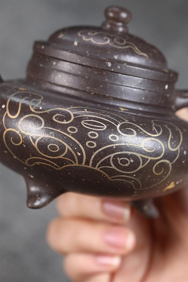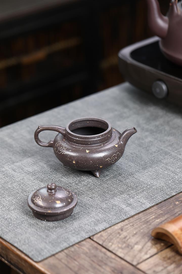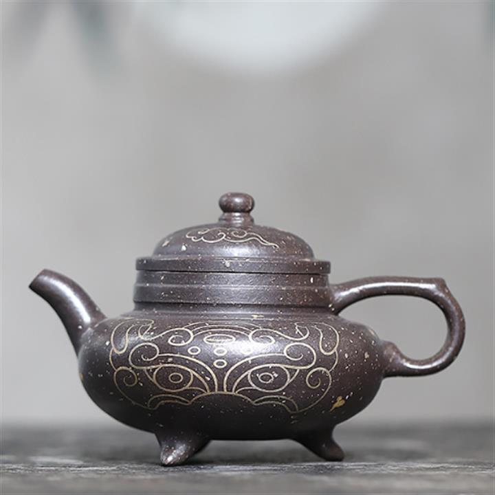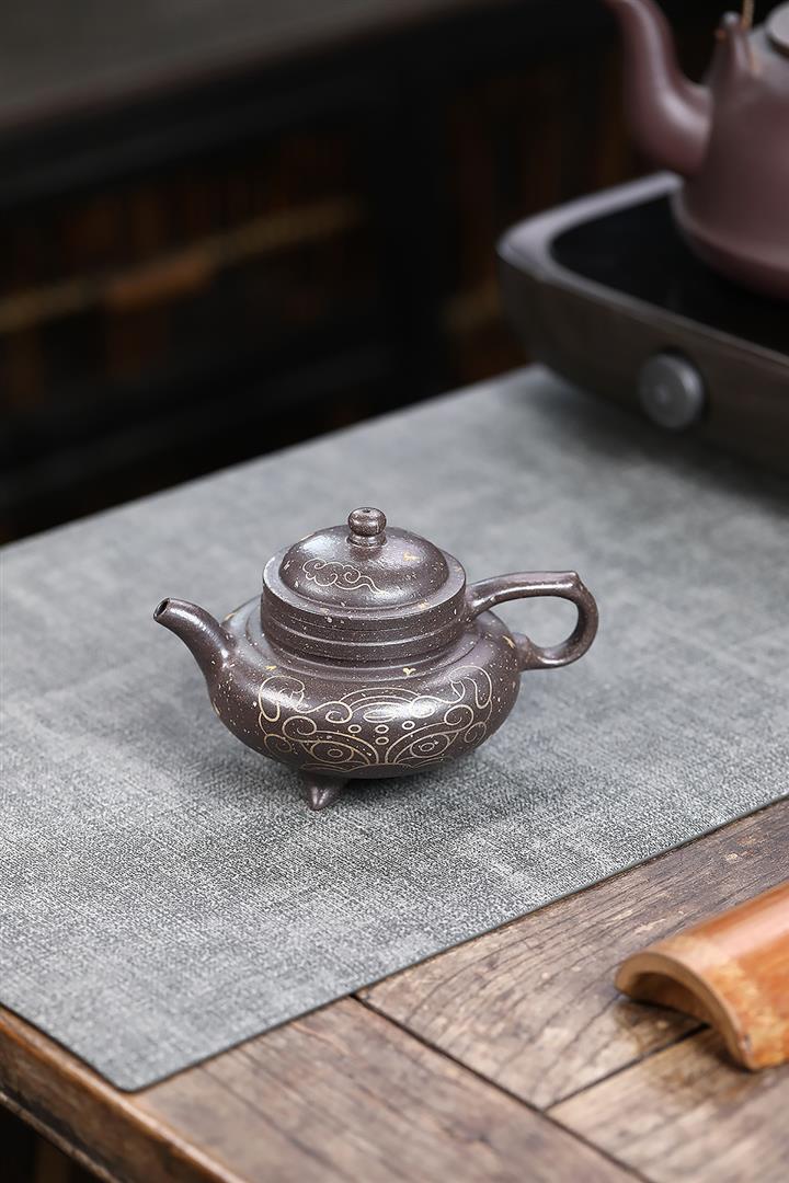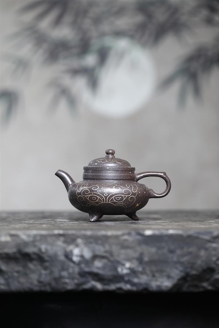 200cc原礦黃金段泥高溫柴燒金砂石趣壺POT8319
