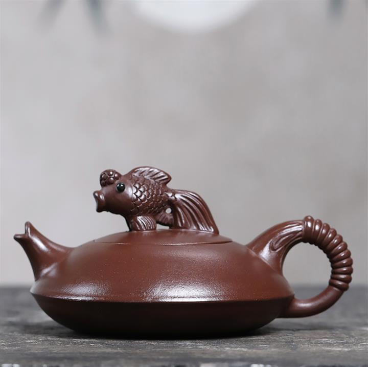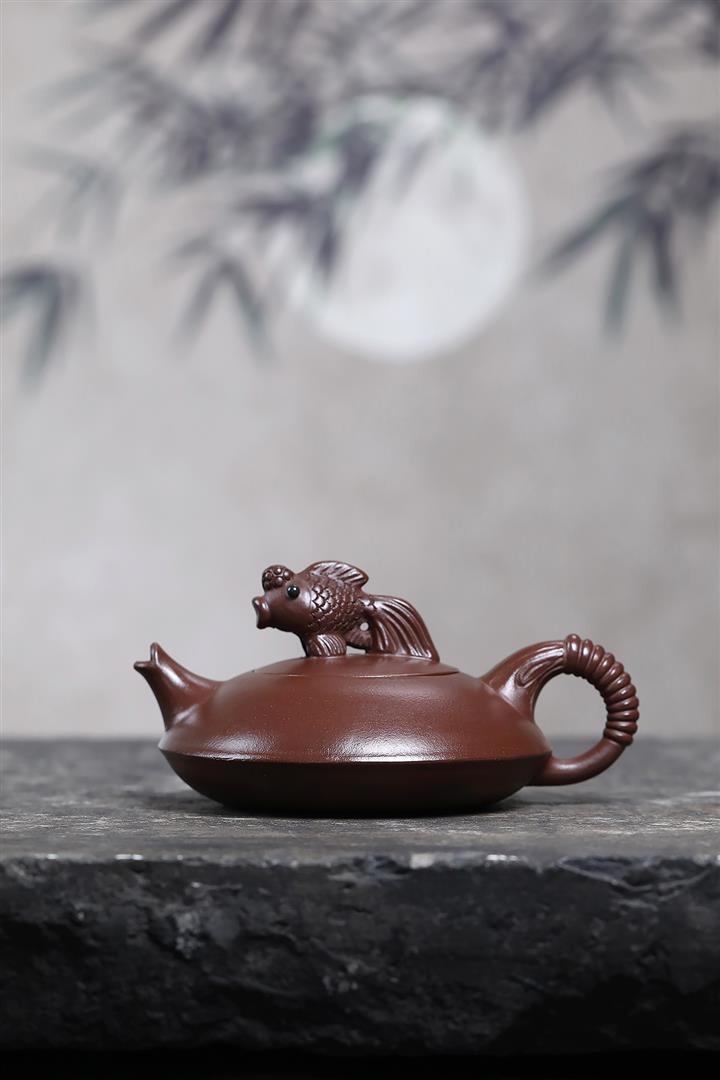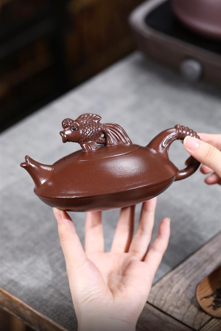 370cc原礦紫泥魚趣線瓢茶壺POT9204