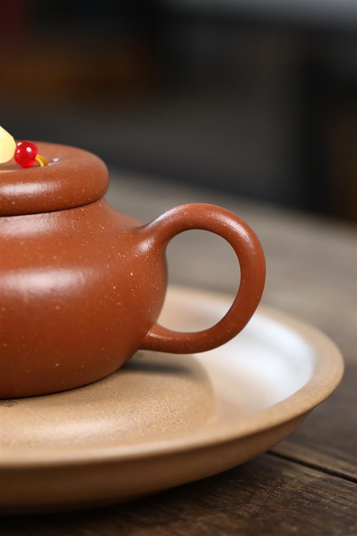【泥料特點】砂土氣重,似淳實農民,日久使用,漸露鋒芒,養成變化,溫潤莊重。紫砂是壹種雙重氣孔結構的多孔性材質,氣孔微細,密度高。用紫砂壺沏茶,不失原味,且香不渙散,得茶之真香真味。紫砂使用越久,壺身色澤越發光亮照人,氣韻溫雅。紫砂壺長久使用器身會因撫摸擦拭,變得越發溫潤光澤。