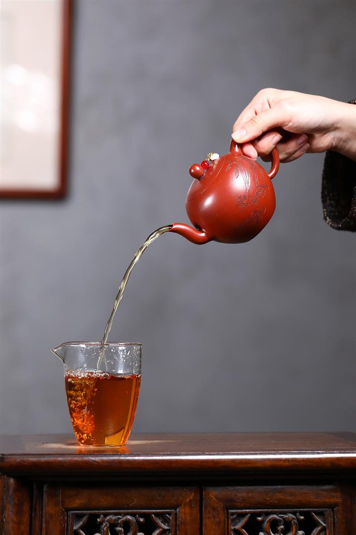 原礦紅皮龍孔雀頌金茶壺POT7137