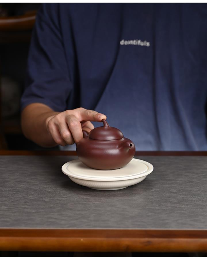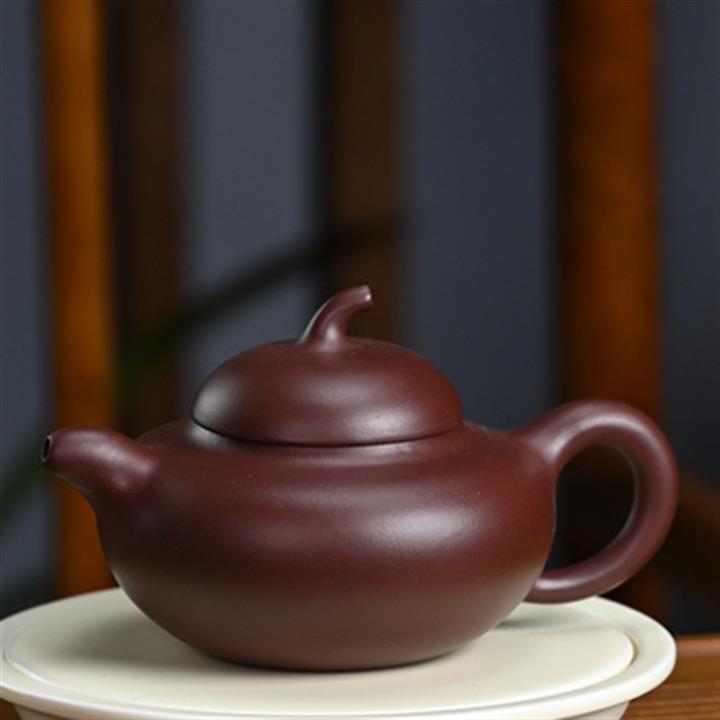 300cc原礦紫泥扁茄瓜仿生光素茶壺POT9221