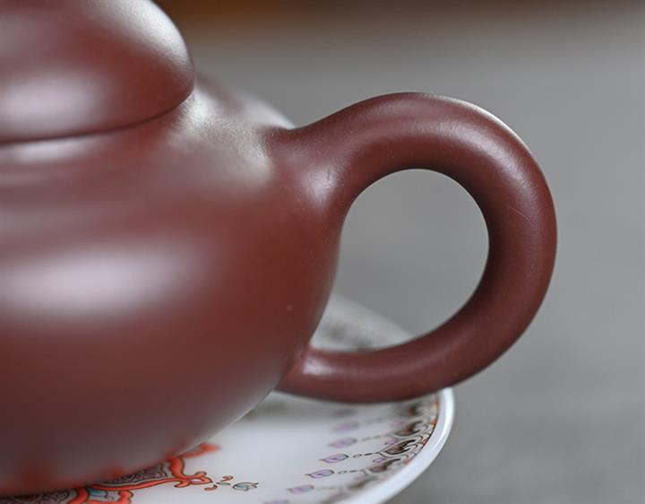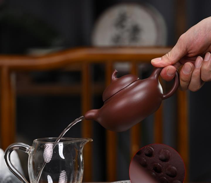 【泥料特點】砂土氣重,似淳實農民,日久使用,漸露鋒芒,養成變化,溫潤莊重。紫砂是壹種雙重氣孔結構的多孔性材質,氣孔微細,密度高。用紫砂壺沏茶,不失原味,且香不渙散,得茶之真香真味。紫砂使用越久,壺身色澤越發光亮照人,氣韻溫雅。紫砂壺長久使用器身會因撫摸擦拭,變得越發溫潤光澤。
