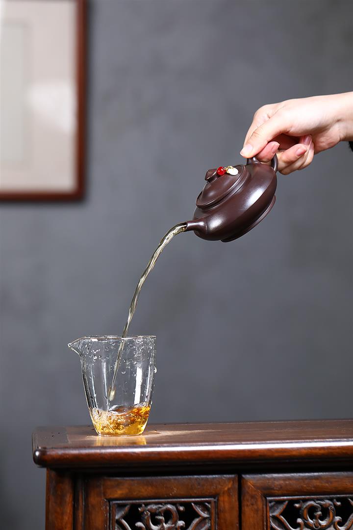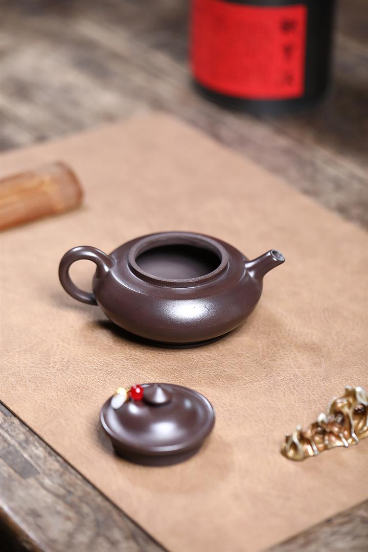 【泥料特點】砂土氣重,似淳實農民,日久使用,漸露鋒芒,養成變化,溫潤莊重。紫砂是壹種雙重氣孔結構的多孔性材質,氣孔微細,密度高。用紫砂壺沏茶,不失原味,且香不渙散,得茶之真香真味。紫砂使用越久,壺身色澤越發光亮照人,氣韻溫雅。紫砂壺長久使用器身會因撫摸擦拭,變得越發溫潤光澤。
