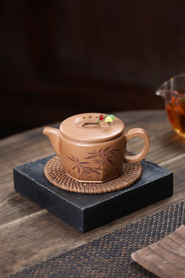 250cc原礦金降坡壹方竹影漢瓦茶壺POT9271